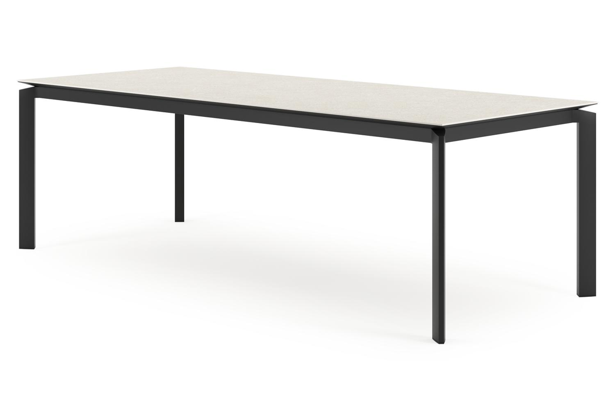 De Cirello tuintafel heeft een modern design. De tafelpoten staan inwaarts gericht naar het middelpunt van de tafel. Bovendien zorgt het frame ervoor dat het tafelblad zweeft boven het frame.