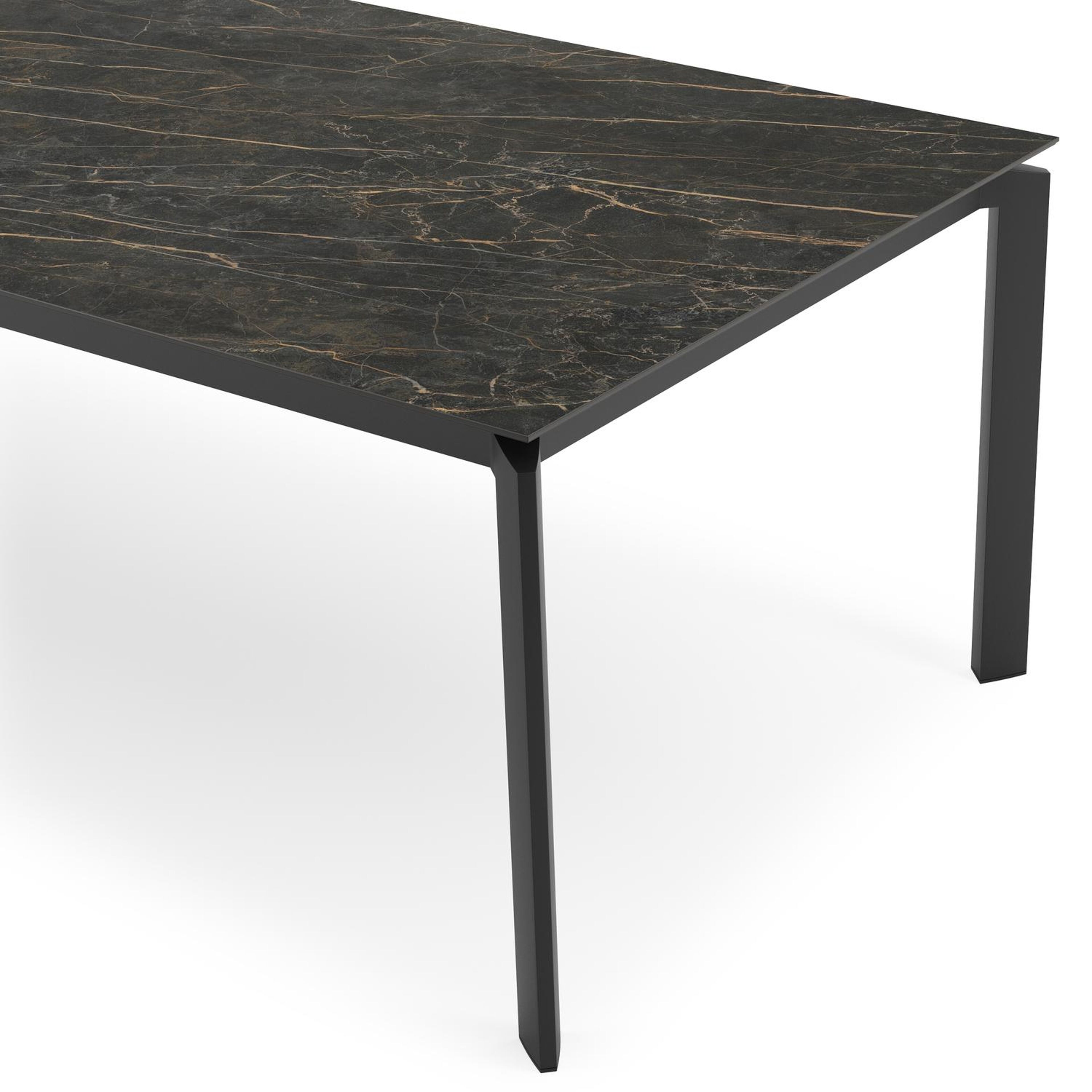 De Cirello tuintafel heeft een modern design. De tafelpoten staan inwaarts gericht naar het middelpunt van de tafel. Bovendien zorgt het frame ervoor dat het tafelblad zweeft boven het frame.