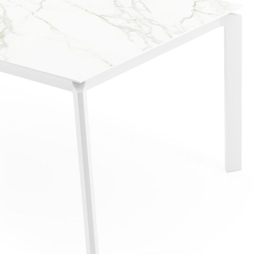 Calacatta is een tafelblad met witte basis die afgewerkt is met grijze aders voor een karakteristieke marmerlook.