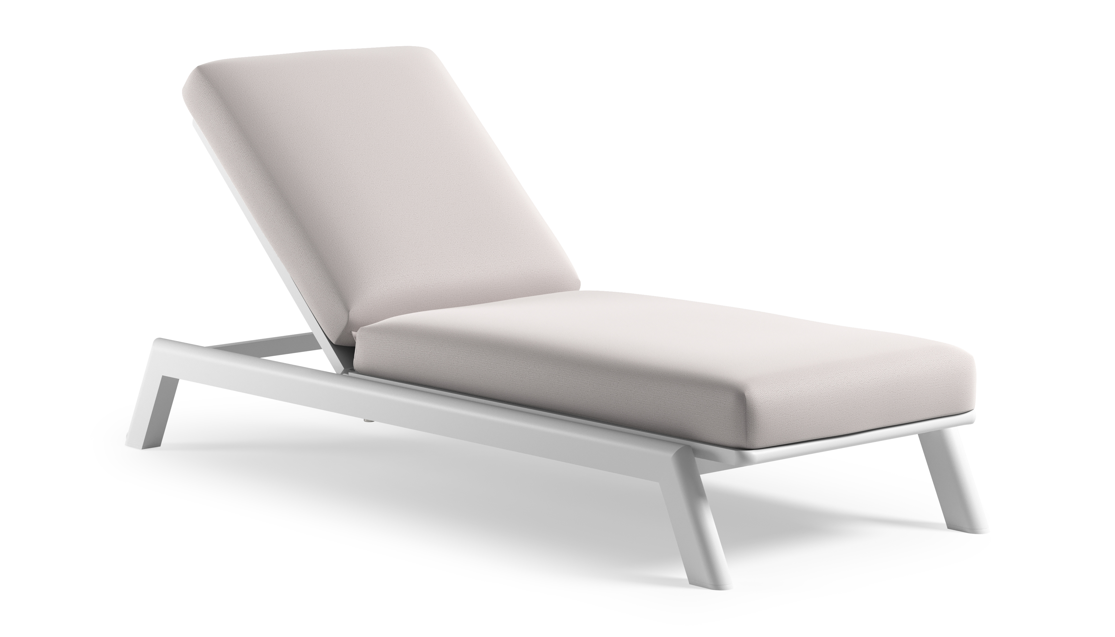 Cirello verstelbaar ligbed met pompsysteem in wit aluminium met savane whisper all weather Sunbrella® luxe kussen | Exterioo tuinmeubelen