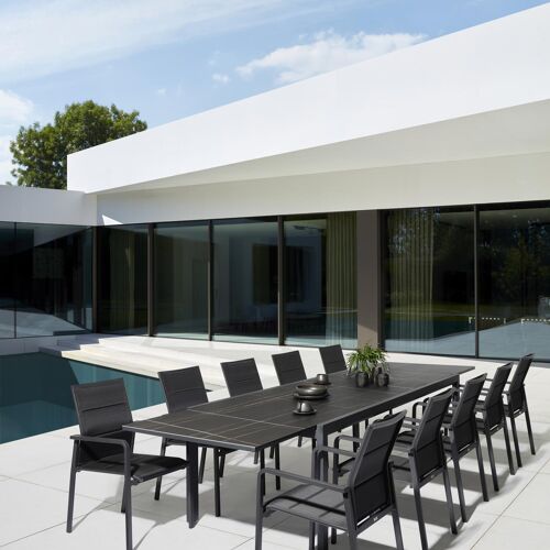 Como (Finato) verlengbare tuintafel in zwart aluminium en volkeramiek zwart - L 240/360 x B 107 x H 76 cm | Exterioo