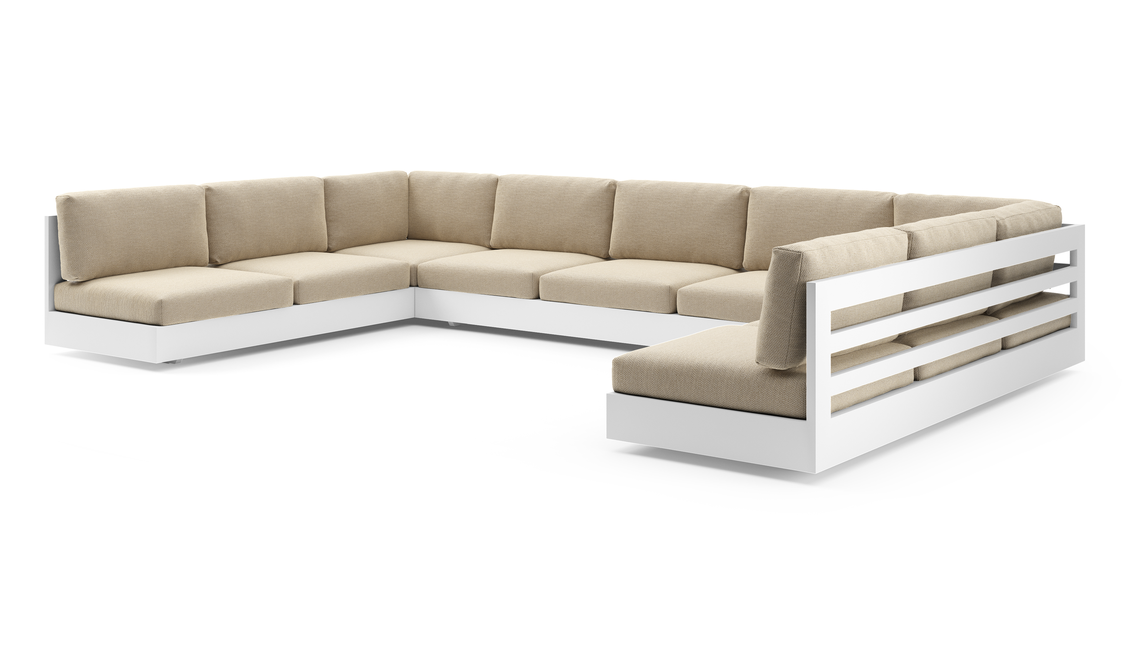 Como loungebank in wit aluminium met althea camel all weather cosytica kussen | Exterioo tuinmeubelen