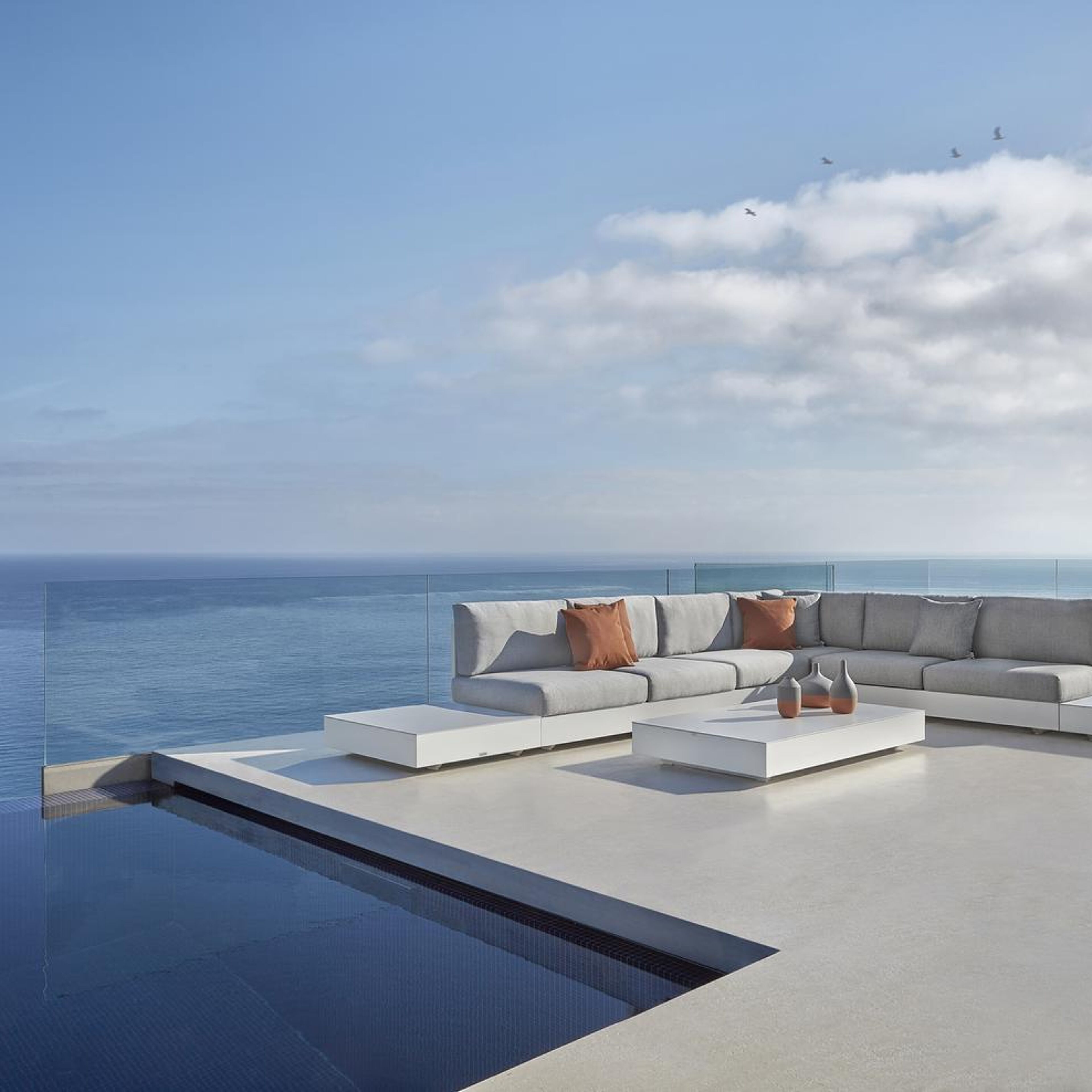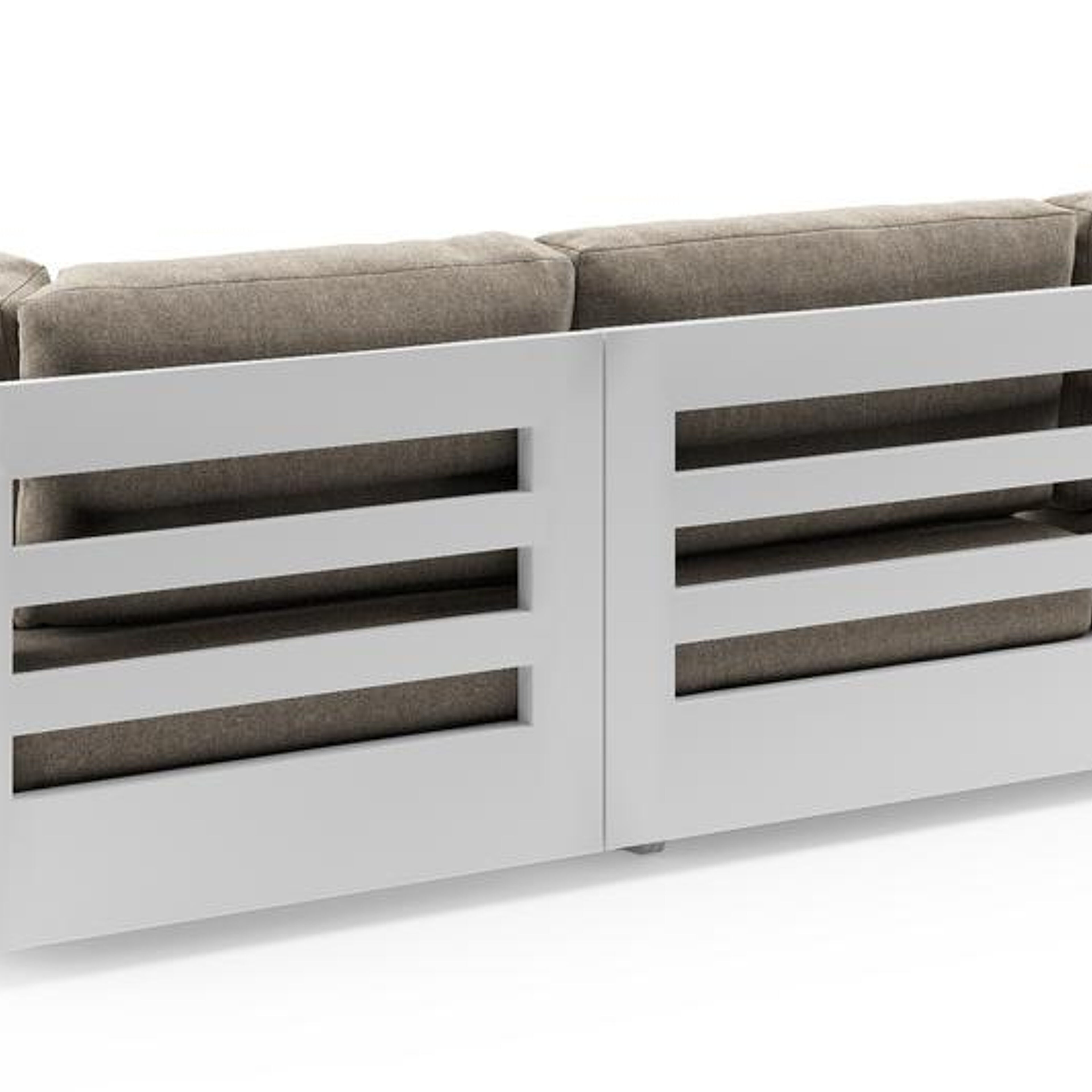 Como loungehoek in wit aluminium met chartres pewter all weather sunbrella® luxe kussen | Exterioo tuinmeubelen