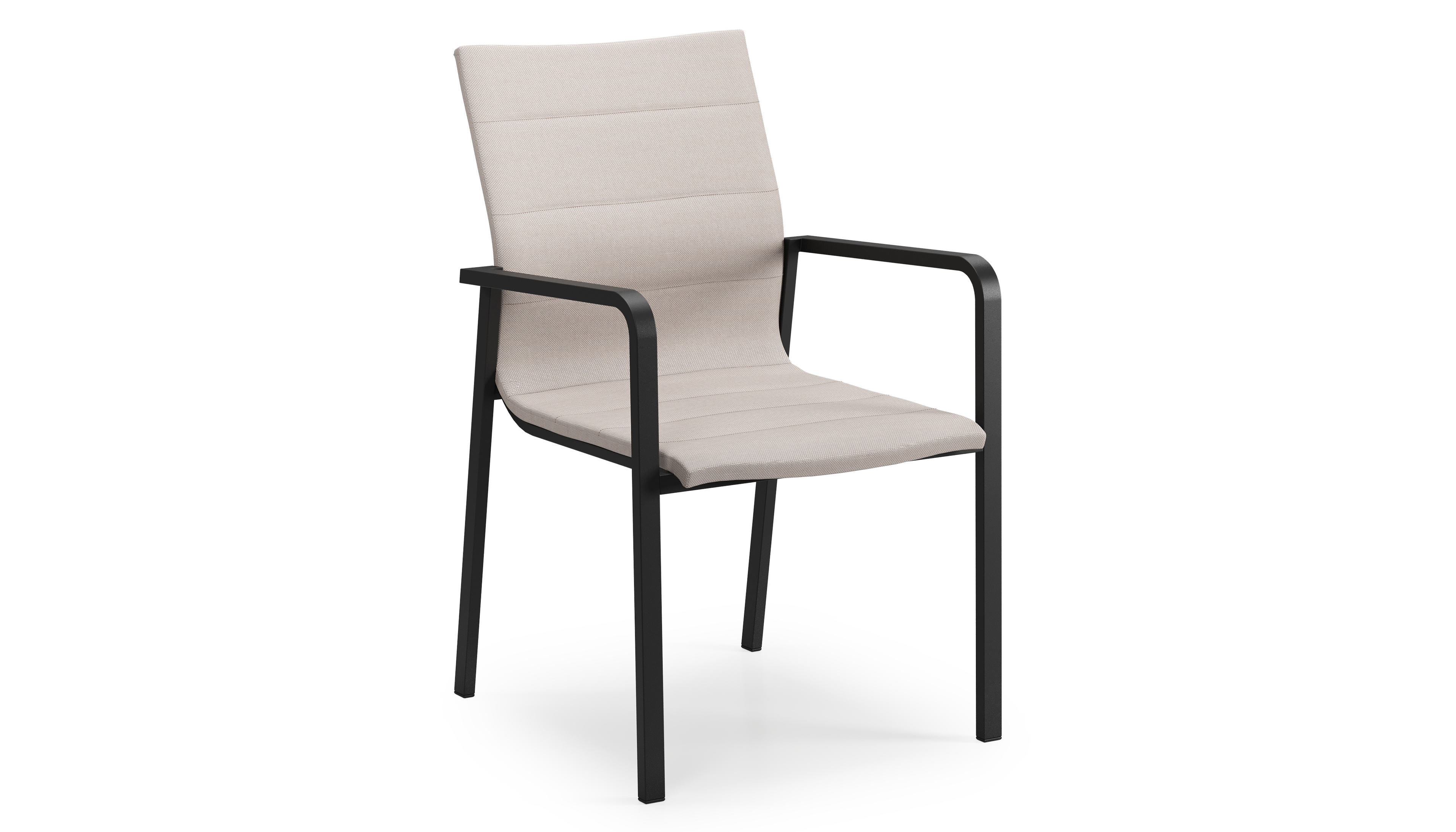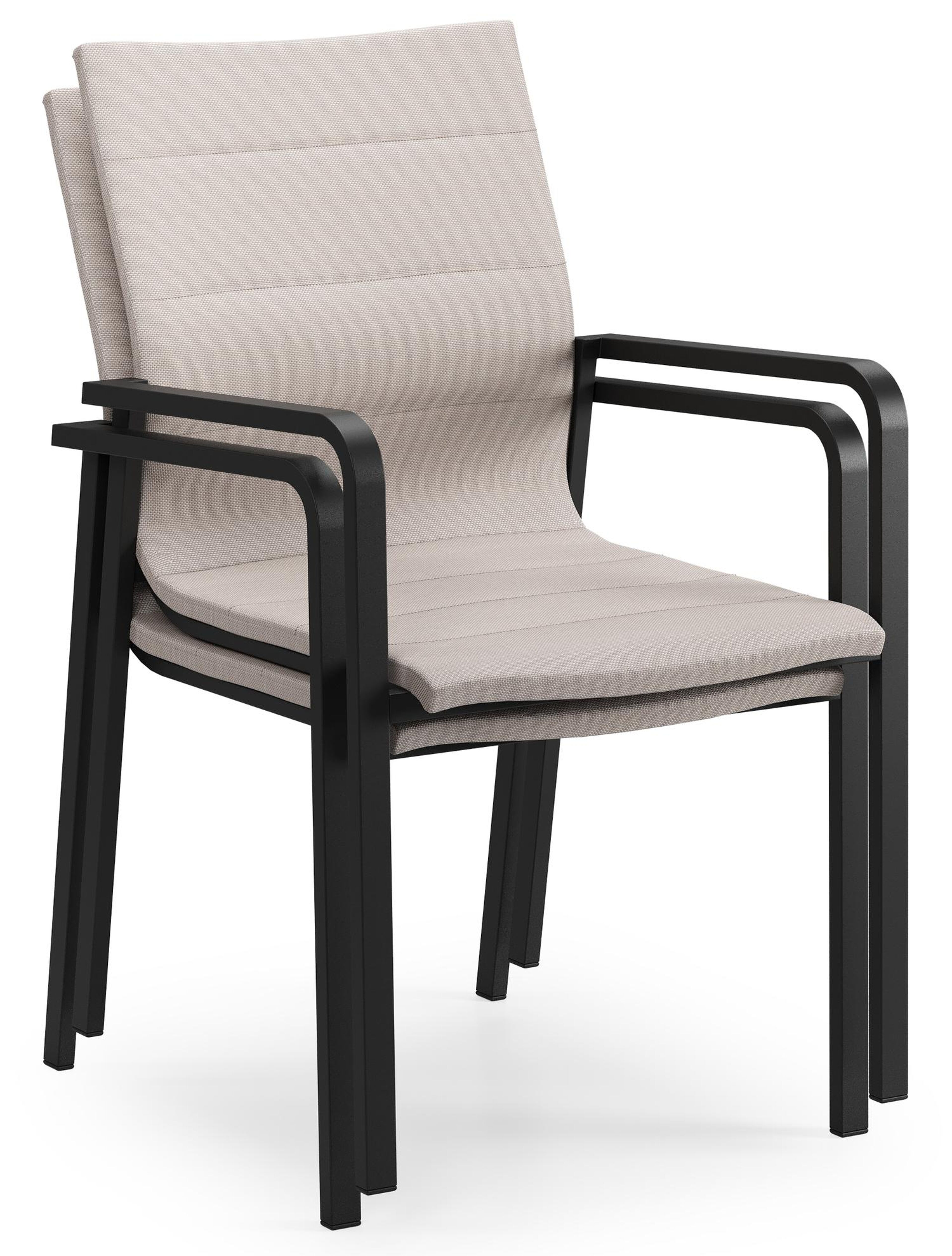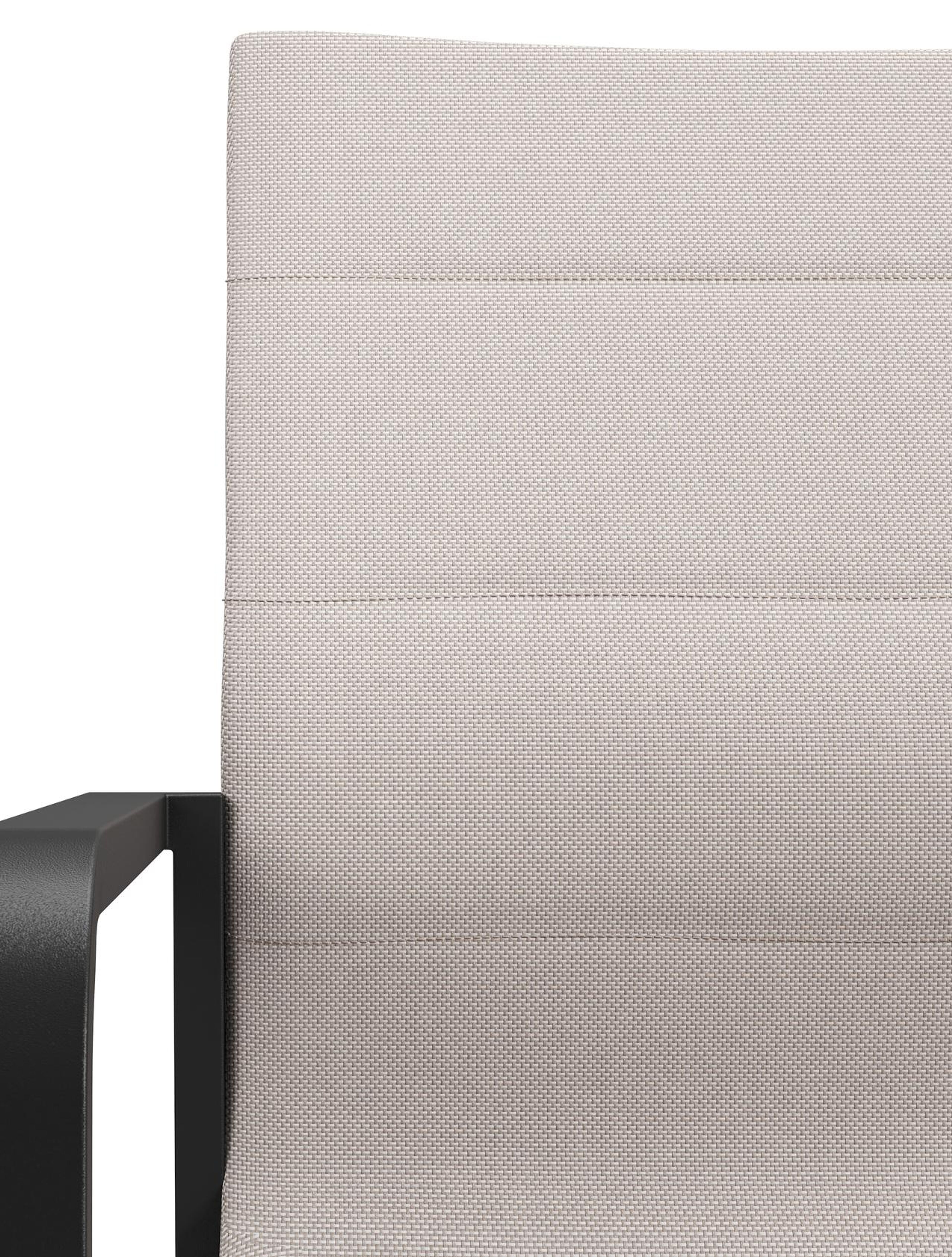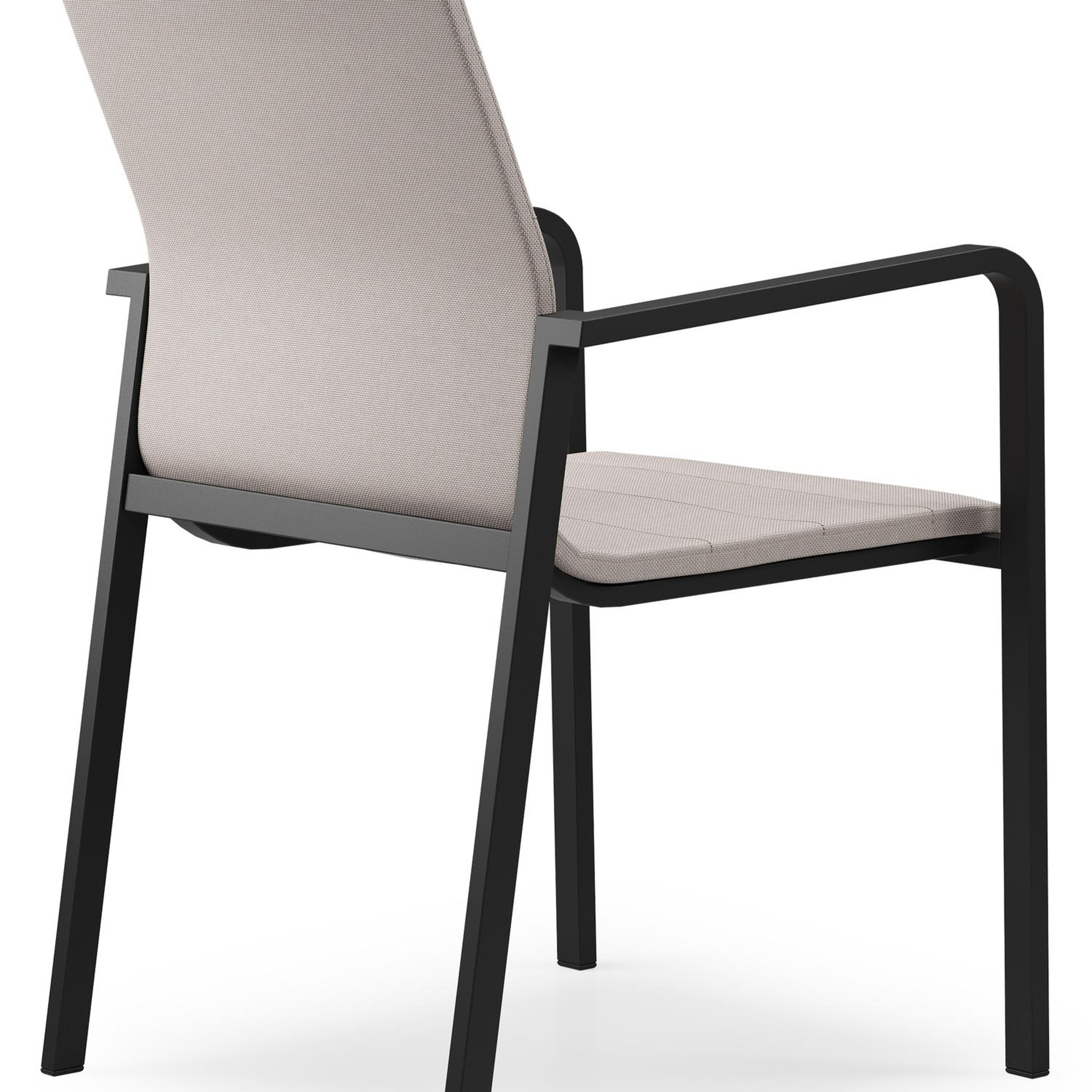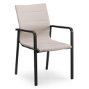 Textilene is een bekleding die bestaat uit polyester draden met een pvc-coating. Textilene is een weerbestendig, vormvast en sneldrogend materiaal. Dankzij de open structuur is het een ademende bekleding en de elasticiteit garandeert een geweldig zitcomfort. De samenstelling maakt het tevens een erg duurzaam materiaal. Luxe textilene omgeeft het zitvlak en de rugleuning om een gedetailleerde afwerking te garanderen. Daarnaast is de afwerking compleet met de elegante siernaden. Tussen de lagen textilene is er een sneldrogende schuimlaag.