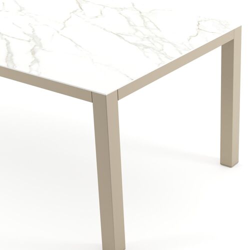 Como tuintafel rechthoekig in beige aluminium en volkeramiek Calacatta - L 200 x B 100 x H 73 cm | Exterioo