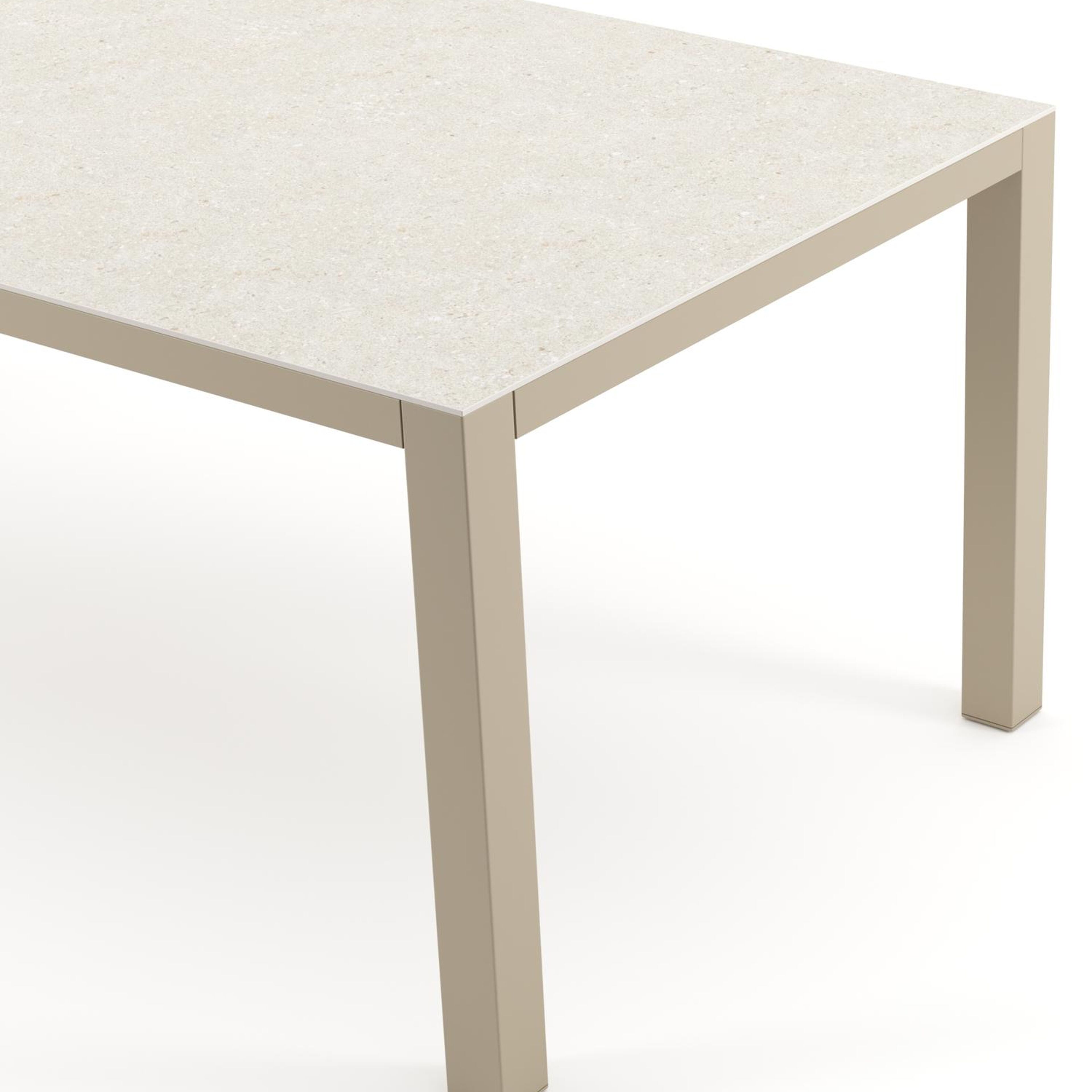 Het frame van de tafel is gemaakt uit roestvrij aluminium, een sterk, maar toch licht materiaal dat makkelijk verplaatsbaar is. Het oppervlak is glad afgewerkt waardoor het geen vuil aantrekt en onderhoudsvriendelijk is. De poedercoating zorgt voor de UV- en weerbestendigheid van je meubel.
