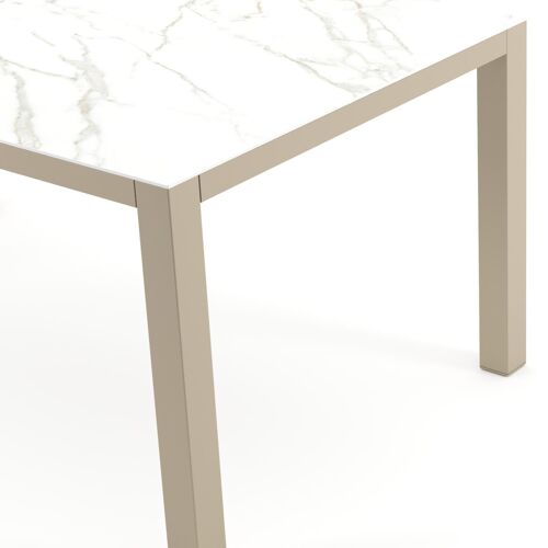 Como tuintafel rechthoekig in beige aluminium en volkeramiek Calacatta - L 160 x B 100 x H 73 cm | Exterioo