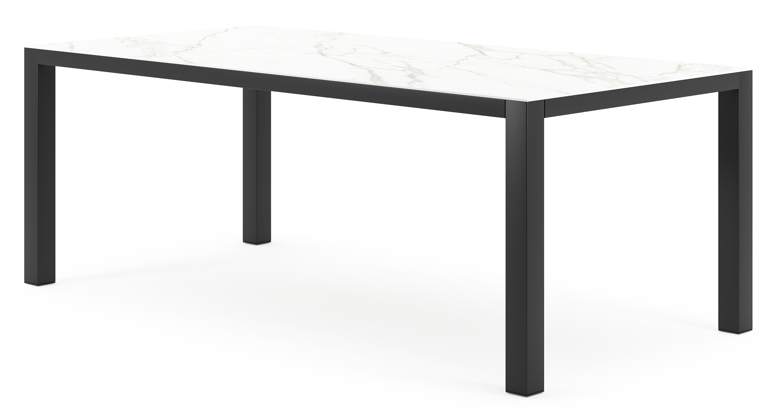 Como tuintafel in zwart aluminium en volkeramiek Calacatta - L 200 x B 100 x H 75 cm | Exterioo tuinmeubelen
