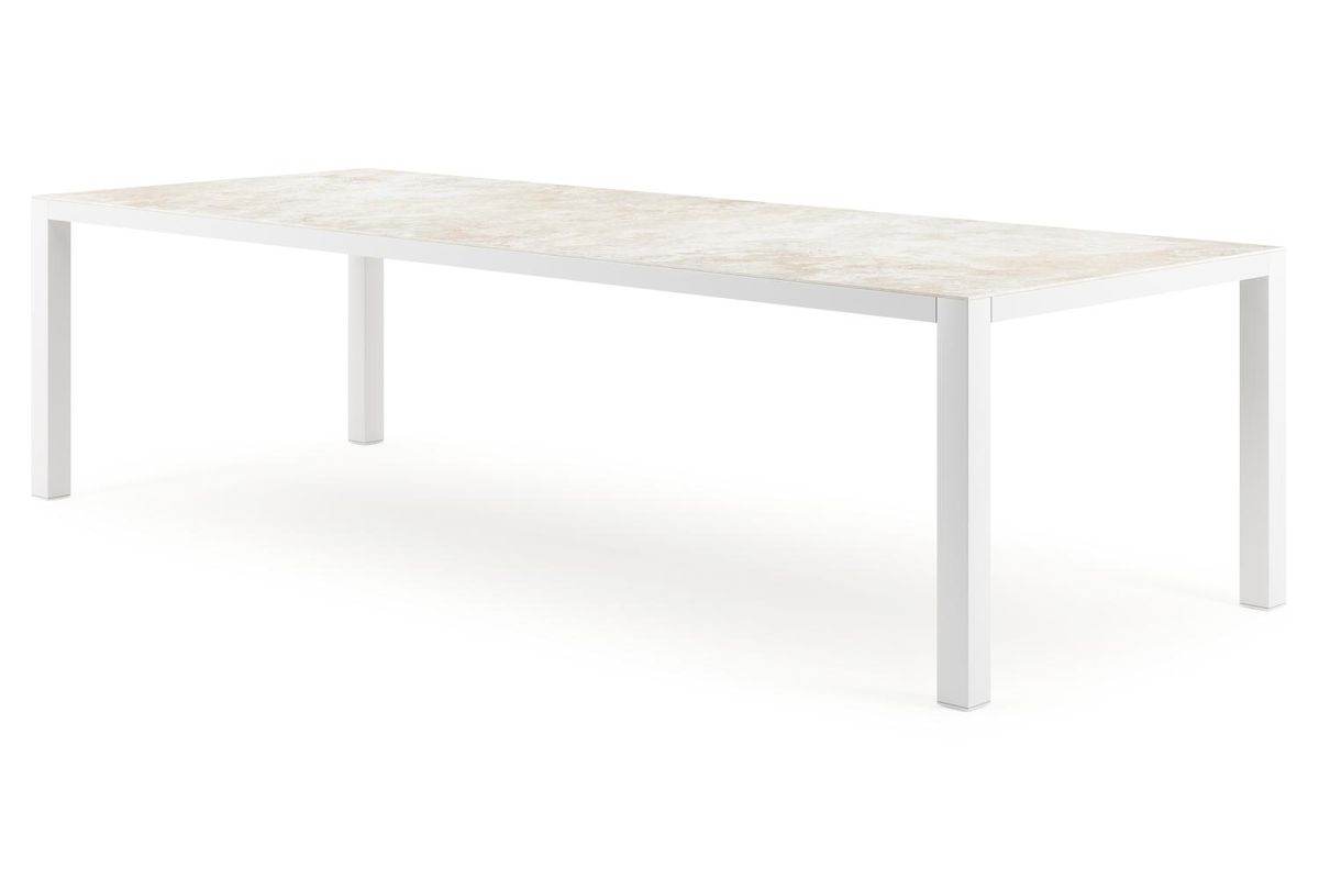 Como tuintafel rechthoekig in wit aluminium en volkeramiek Rapolano L 280 x B 110 cm | Exterioo