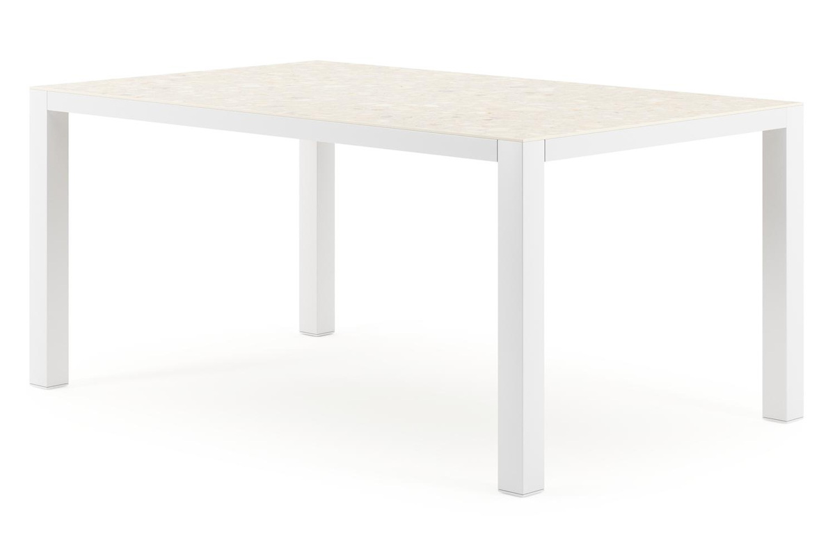 Het Retrostone tafelblad heeft een elegant oppervlak dat gebaseerd is op traditionele terrazzo: het blad combineert verschillende grijstinten met andere zachte kleuren als roze, geel, beige, crème, etc. Het tafelblad heeft een subtiele glans in de witte stukjes en voegt kracht en expressiviteit toe aan je buitenruimte.