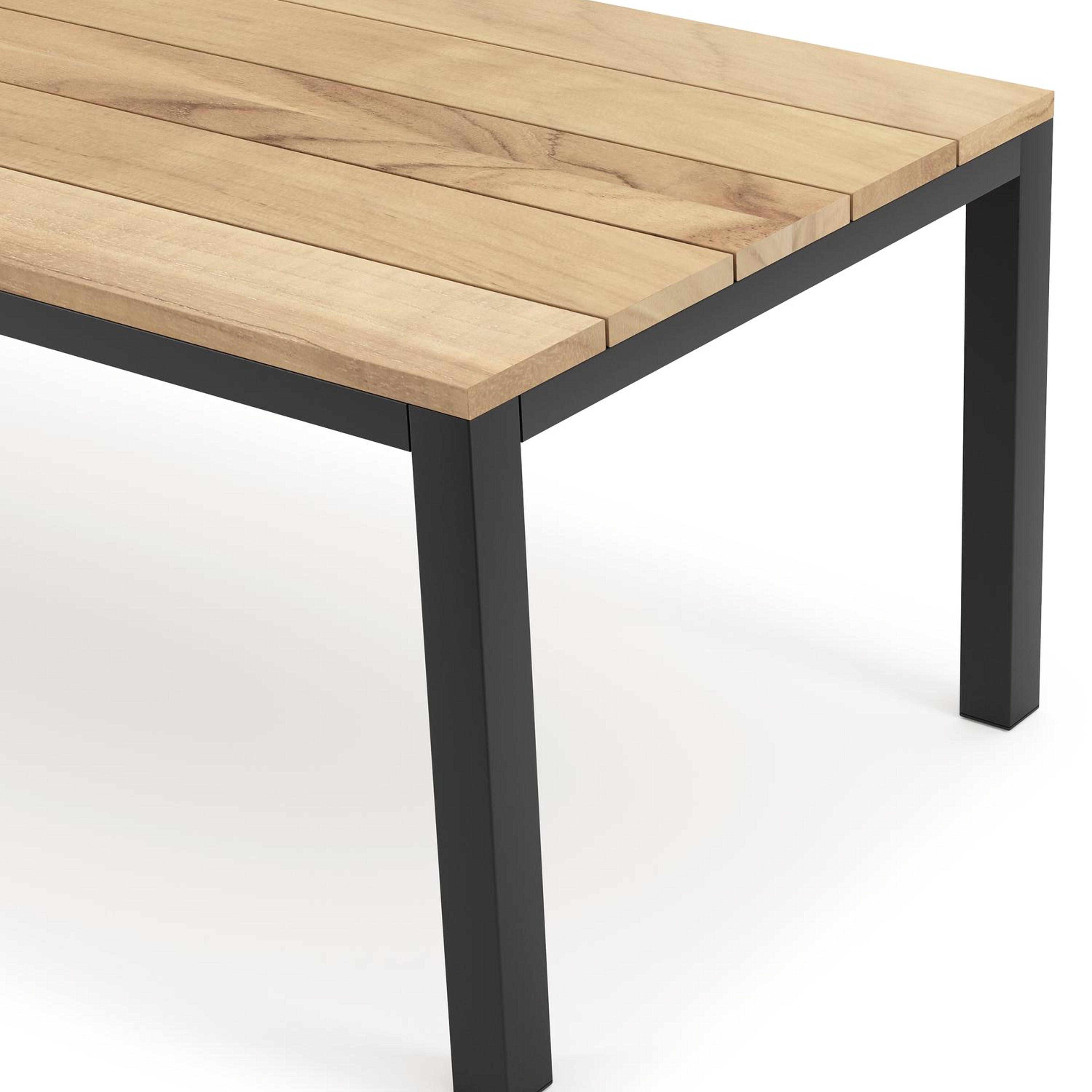 Een tafelblad uit teak staat gelijk aan bijzondere kwaliteit en natuurlijk design. Teak is een kwalitatieve houtsoort gekenmerkt door zijn hardheid. Aangezien hout leeft, kan de structuur of kleur licht anders zijn dan op het beeld weergegeven.