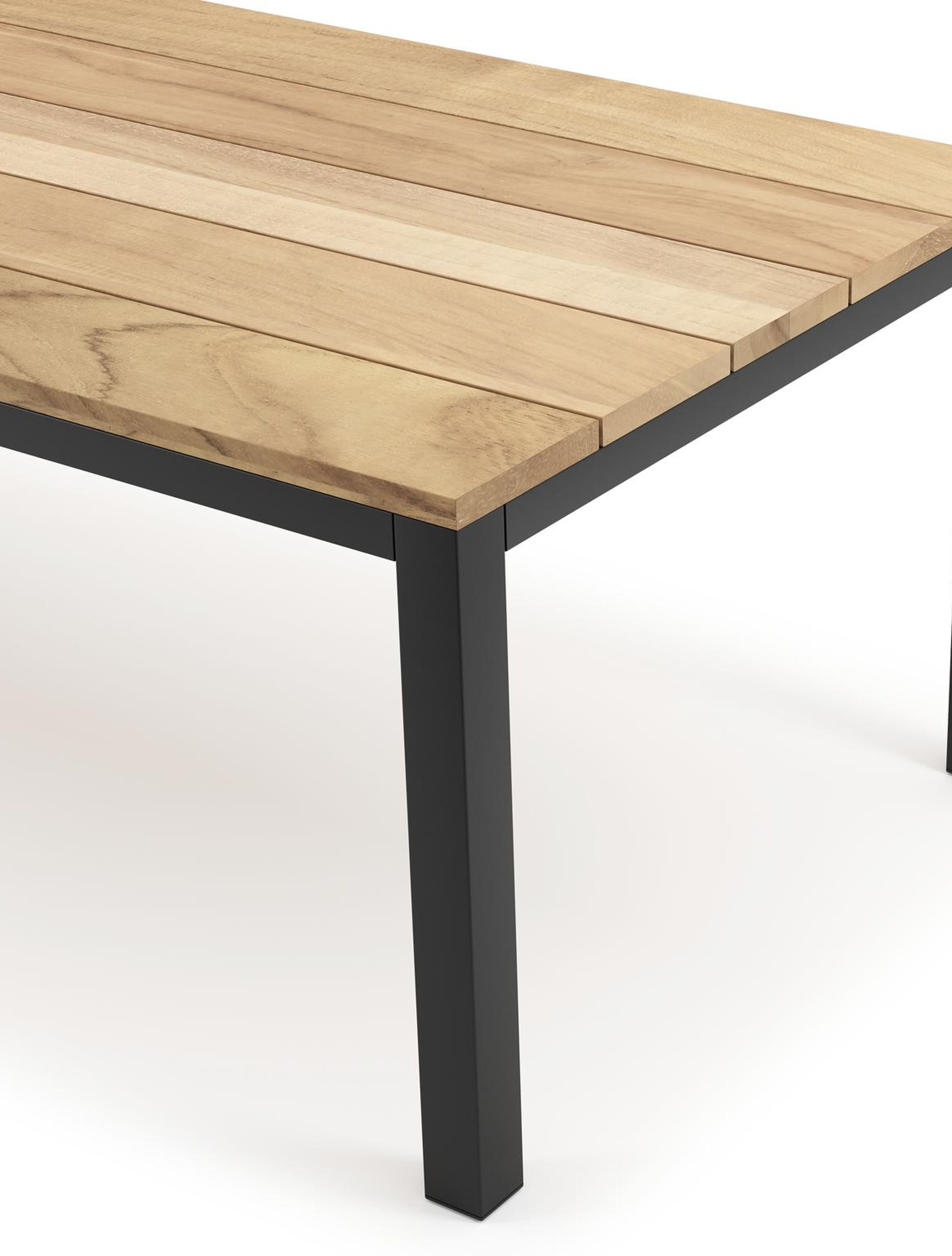 Een tafelblad uit teak staat gelijk aan bijzondere kwaliteit en natuurlijk design. Teak is een kwalitatieve houtsoort gekenmerkt door zijn hardheid. Aangezien hout leeft, kan de structuur of kleur licht anders zijn dan op het beeld weergegeven.