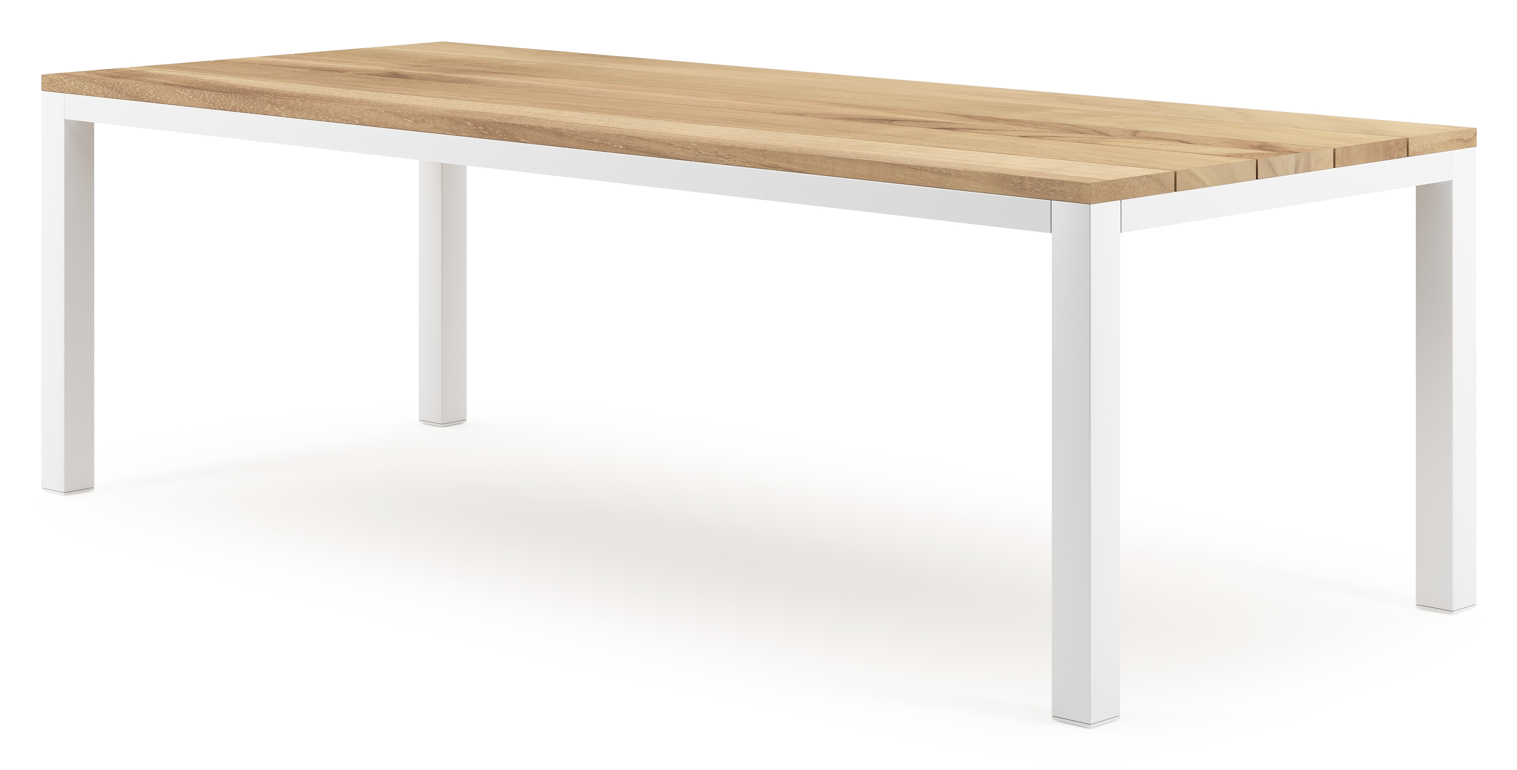 Een tafelblad uit teak staat gelijk aan bijzondere kwaliteit en natuurlijk design. Teak is een kwalitatieve houtsoort gekenmerkt door zijn hardheid. Aangezien hout leeft, kan de structuur of kleur licht anders zijn dan op het beeld weergegeven.