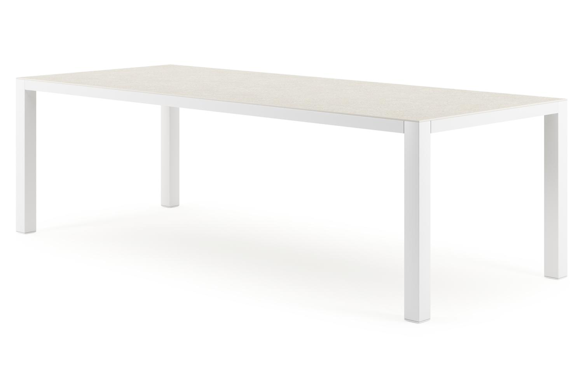 Het frame van de tafel is gemaakt uit roestvrij aluminium, een sterk, maar toch licht materiaal dat makkelijk verplaatsbaar is. Het oppervlak is glad afgewerkt waardoor het geen vuil aantrekt en onderhoudsvriendelijk is. De poedercoating zorgt voor de UV- en weerbestendigheid van je meubel.