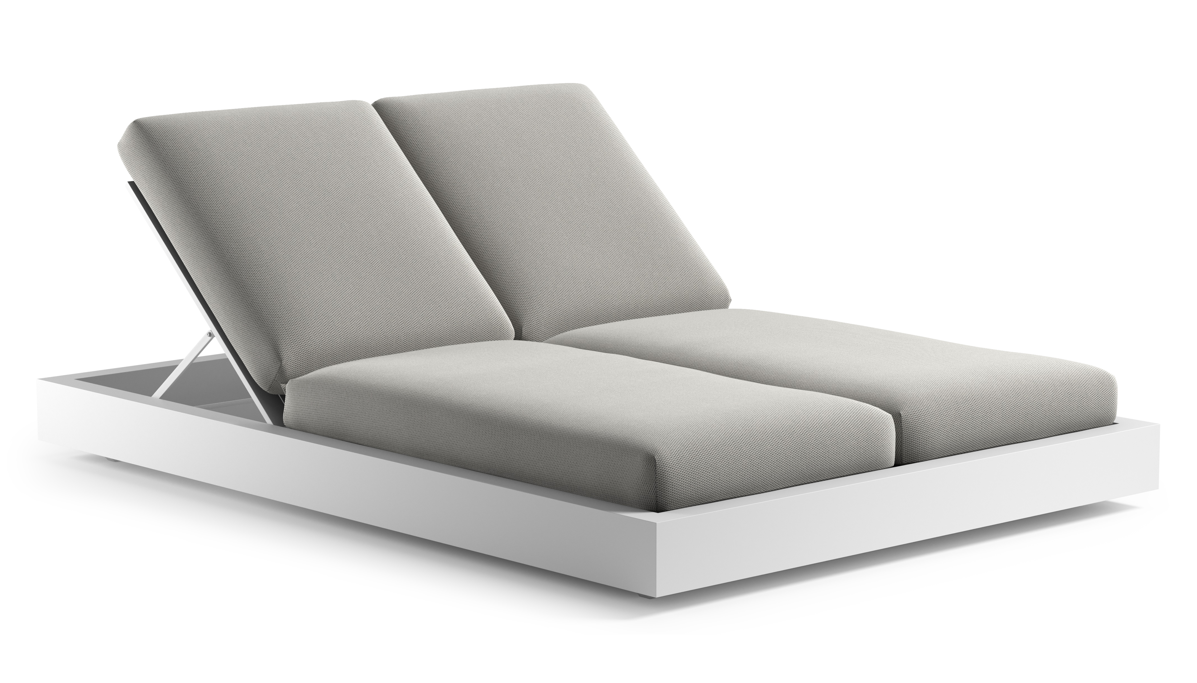 Como verstelbaar dubbel ligbed in wit aluminium met lopi ash all weather Sunbrella® luxe kussen | Exterioo tuinmeubelen