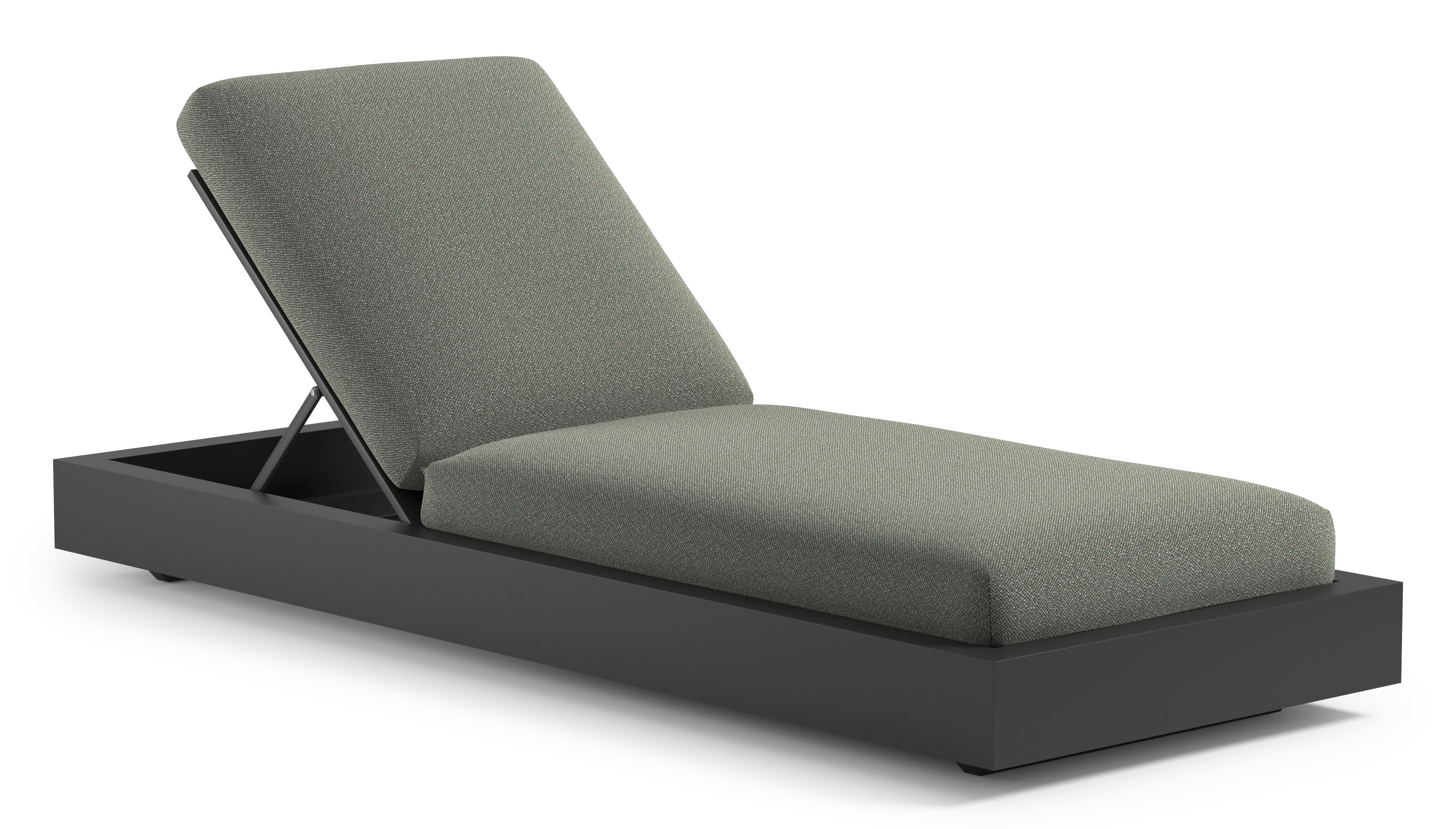 Como verstelbaar ligbed in zwart aluminium met savane leaf all weather Sunbrella® luxe kussen | Exterioo tuinmeubelen