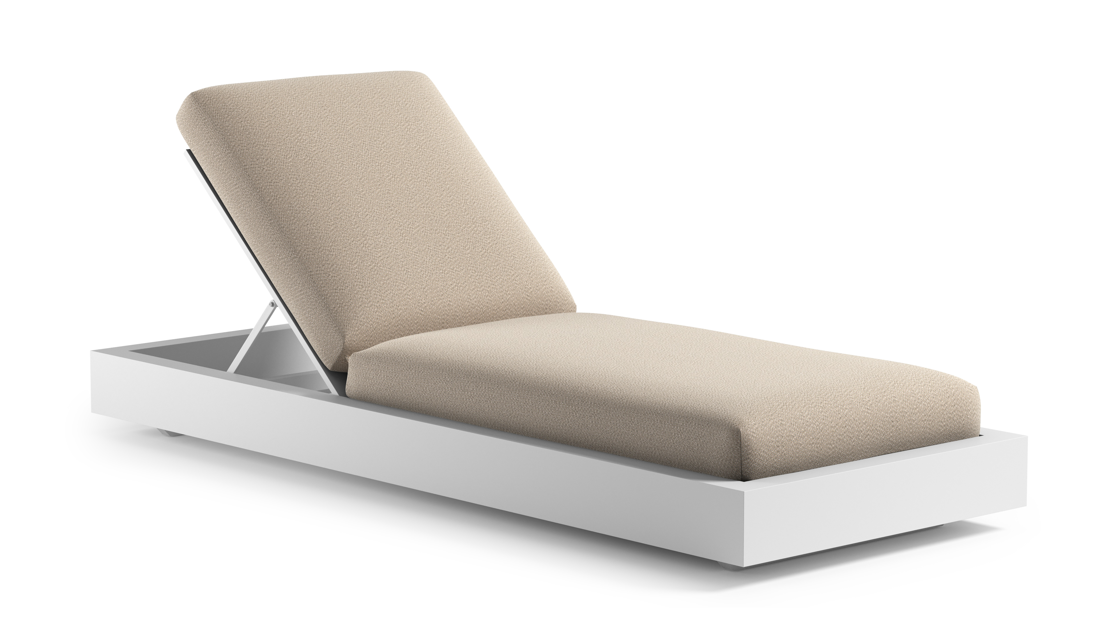 Como verstelbaar ligbed in wit aluminium met lopi sand all weather Sunbrella® luxe kussen | Exterioo tuinmeubelen