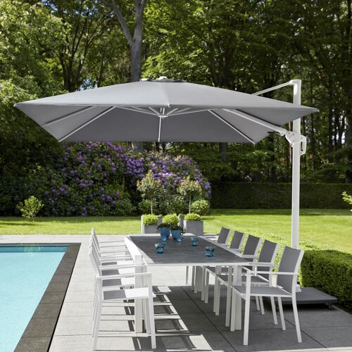 De Copica zweefparasol is een gebruiksvriendelijke zweefparasols met alle nodige functies en een polyester parasoldoek, ideaal om schaduw te brengen op warme zonnige dagen. De mast van de parasol is gemaakt uit roestvrij aluminium, een stevig en licht materiaal. De parasoldoek bestaat uit polyester, een zachte en egale stof. De parasol beschikt over een zijwaartse tiltfunctie, zo kan je de parasol ook makkelijker kantelen dan bij de standaard tiltfunctie. Daarnaast heeft de parasol ook een verstelbare functie, zo kan je de parasol in hoogte aanpassen. De parasol draait ook 360 graden rond zijn as, zo heb je overal schaduw. Geniet van de kwalitatieve Copica zweefparasol en beleef onvergetelijke buitenmomenten.