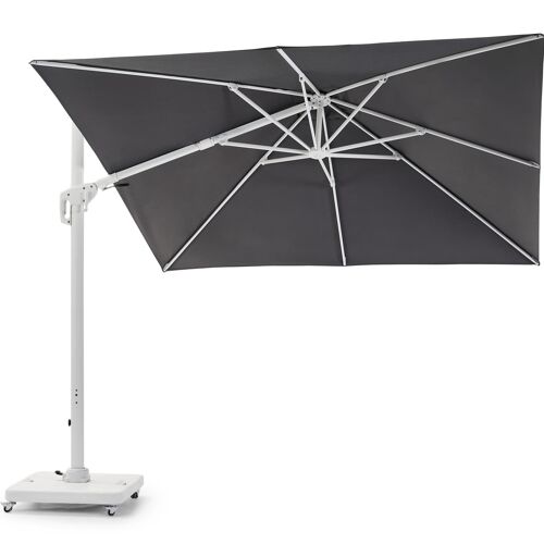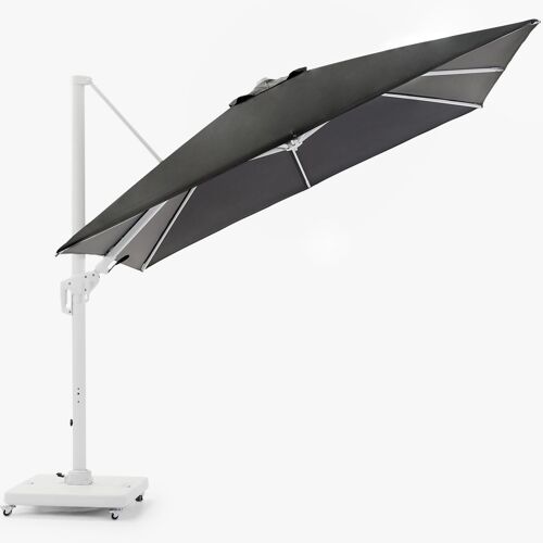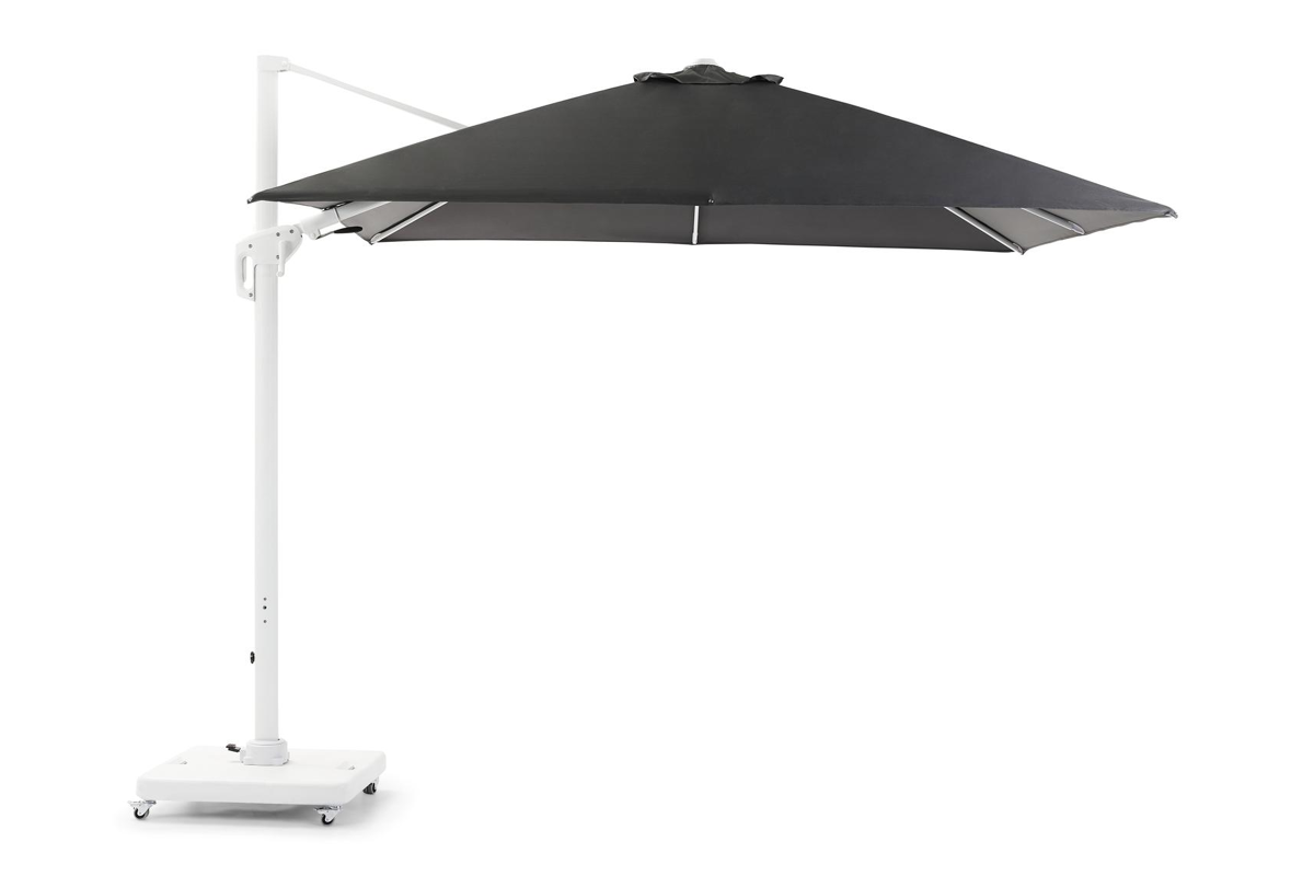 De Copica zweefparasol is een gebruiksvriendelijke zweefparasol. De kleur van de mast is wit, deze bestaat uit aluminium. De parasoldoek is grijs en gemaakt van polyester. De parasolvoet op wieltjes is inbegrepen en weegt 120 kg. De parasol is in hoogte verstelbaar en kan 360° graden rond zijn eigen as draaien. De parasol LED-verlichting is apart verkrijgbaar. De afmetingen zijn: L1: 300 x L2: 300 cm.