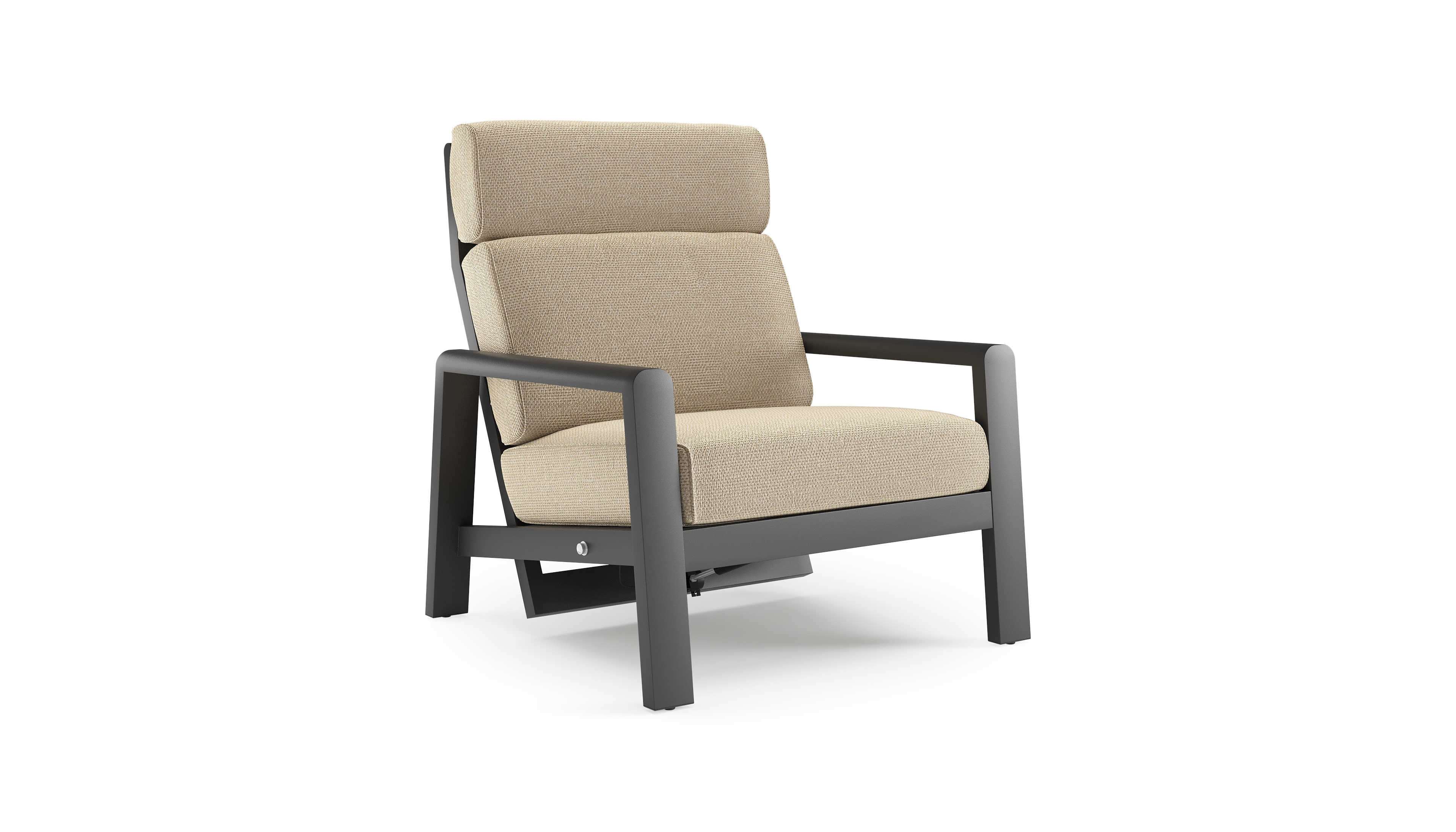 Cosenzo loungestoel in zwart aluminium met althea camel all weather cosytica kussen | Exterioo tuinmeubelen