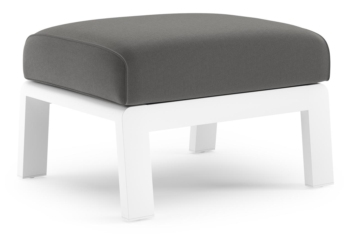 Cosenzo poef in wit aluminium met charcoal chine all weather sunbrella® luxe kussen | Exterioo