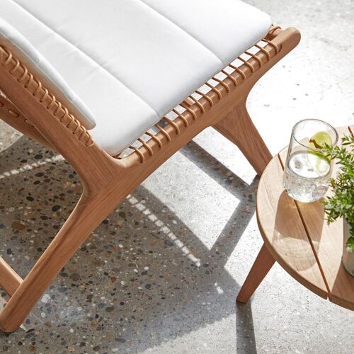 De Cosito bijzettafel in teak met rond tafelblad is een elegante bijzettafel.Een bijzettafel uit teak staat gelijk aan bijzondere kwaliteit en natuurlijk design. Teak is een kwalitatieve houtsoort gekenmerkt door zijn hardheid. Aangezien hout leeft, kan de structuur of kleur licht anders zijn dan op het beeld weergegeven.
