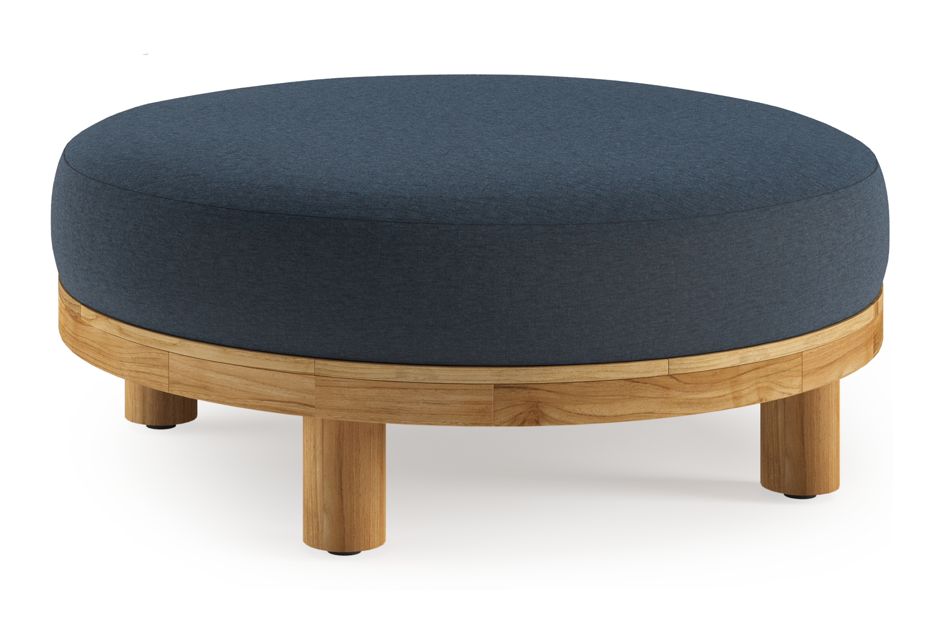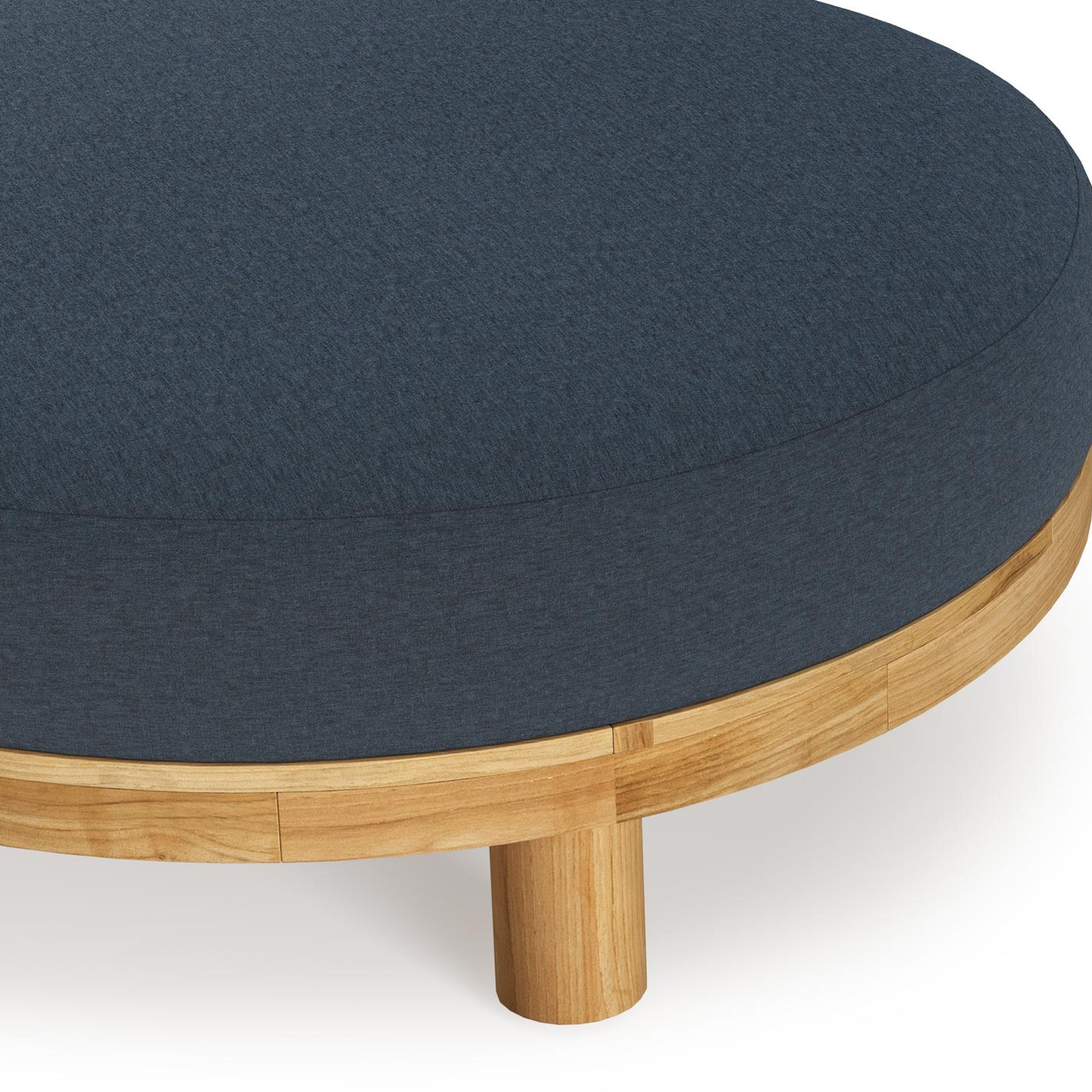 Donato lounge poef in teak en beige verticaal geweven ronde rope met all weather sunbrella® luxe Heritage Indigo kussen | Exterioo tuinmeubelen