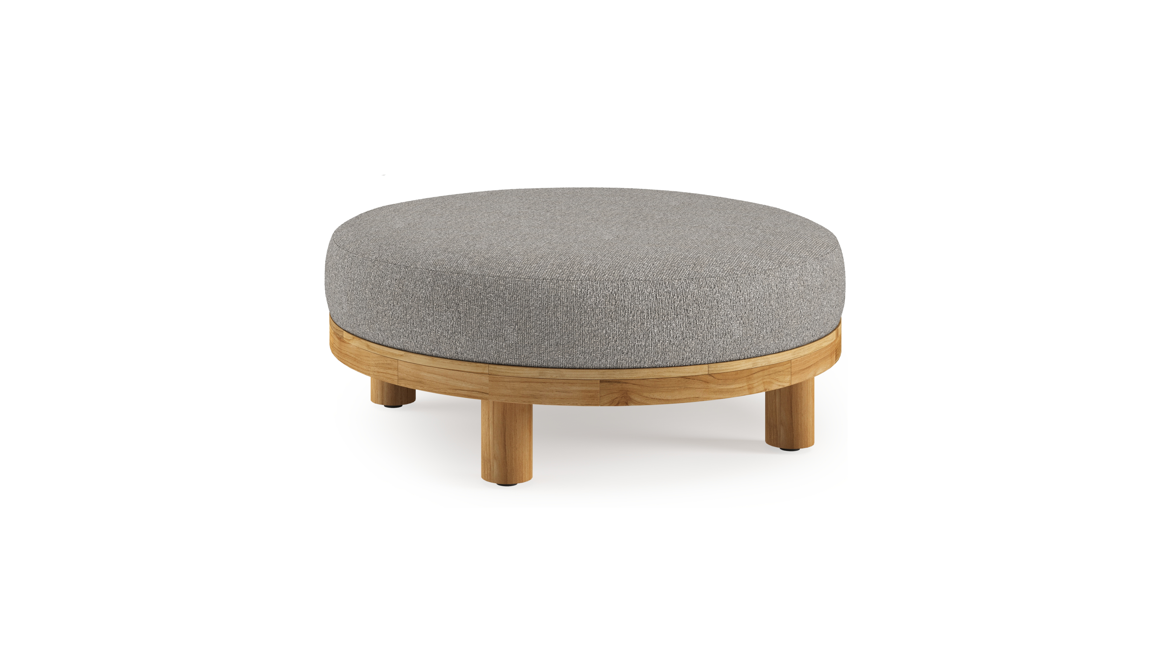 Donato lounge poef in teak en beige verticaal geweven ronde rope met all weather sunbrella® luxe Tundra Charcoal kussen | Exterioo tuinmeubelen