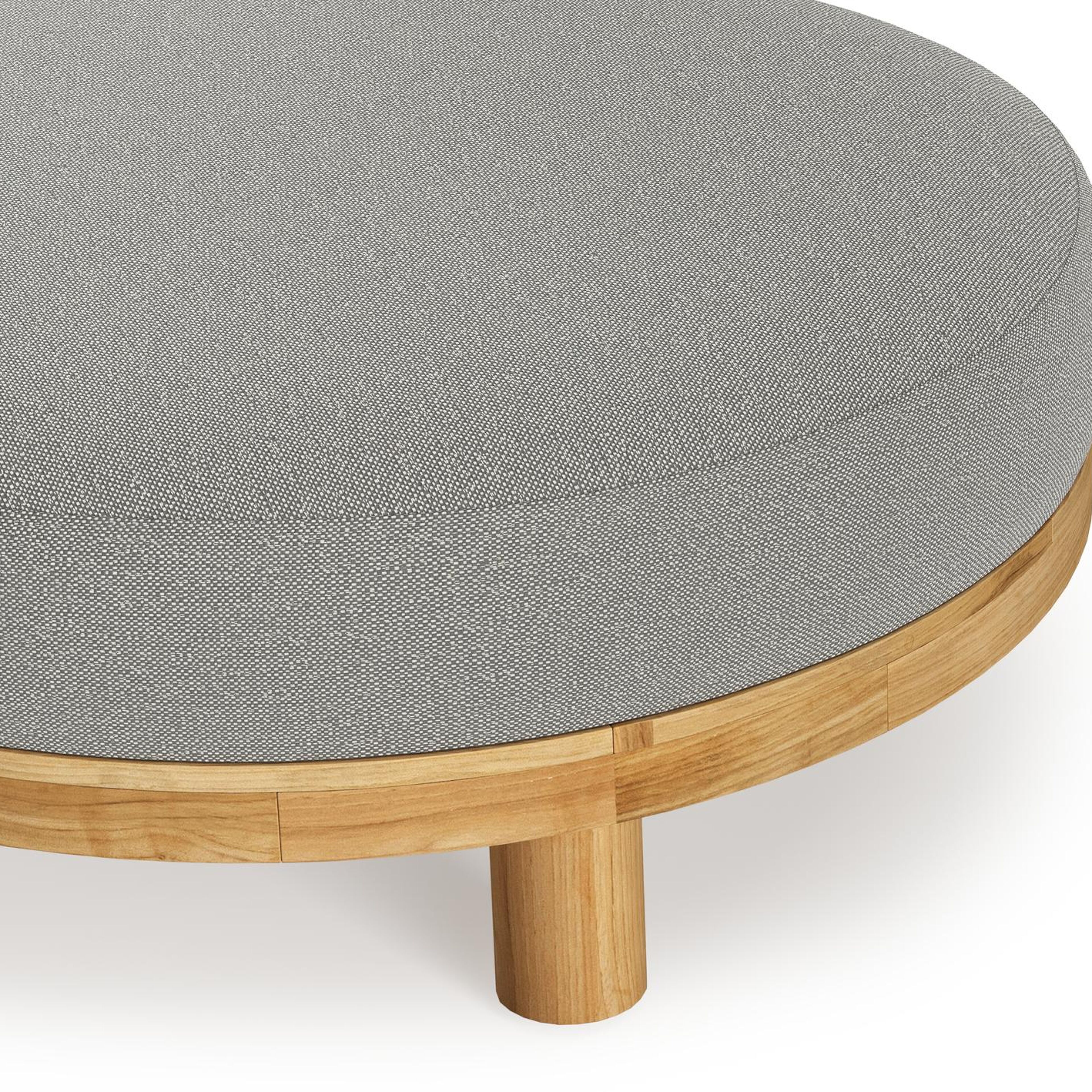 Donato lounge poef in teak en beige verticaal geweven ronde rope met all weather sunbrella® luxe Savane Zinc kussen | Exterioo tuinmeubelen