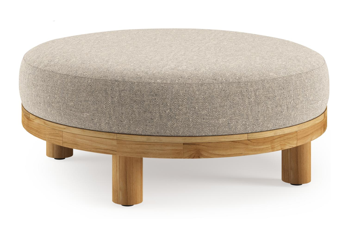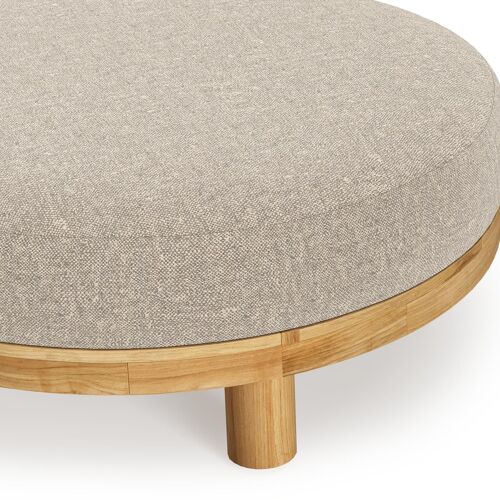 Donato lounge poef in teak en beige verticaal geweven ronde rope met all weather sunbrella® luxe Chartres Pewter kussen | Exterioo