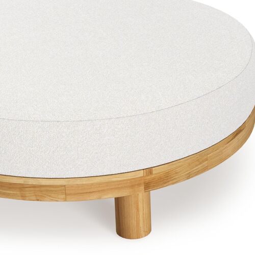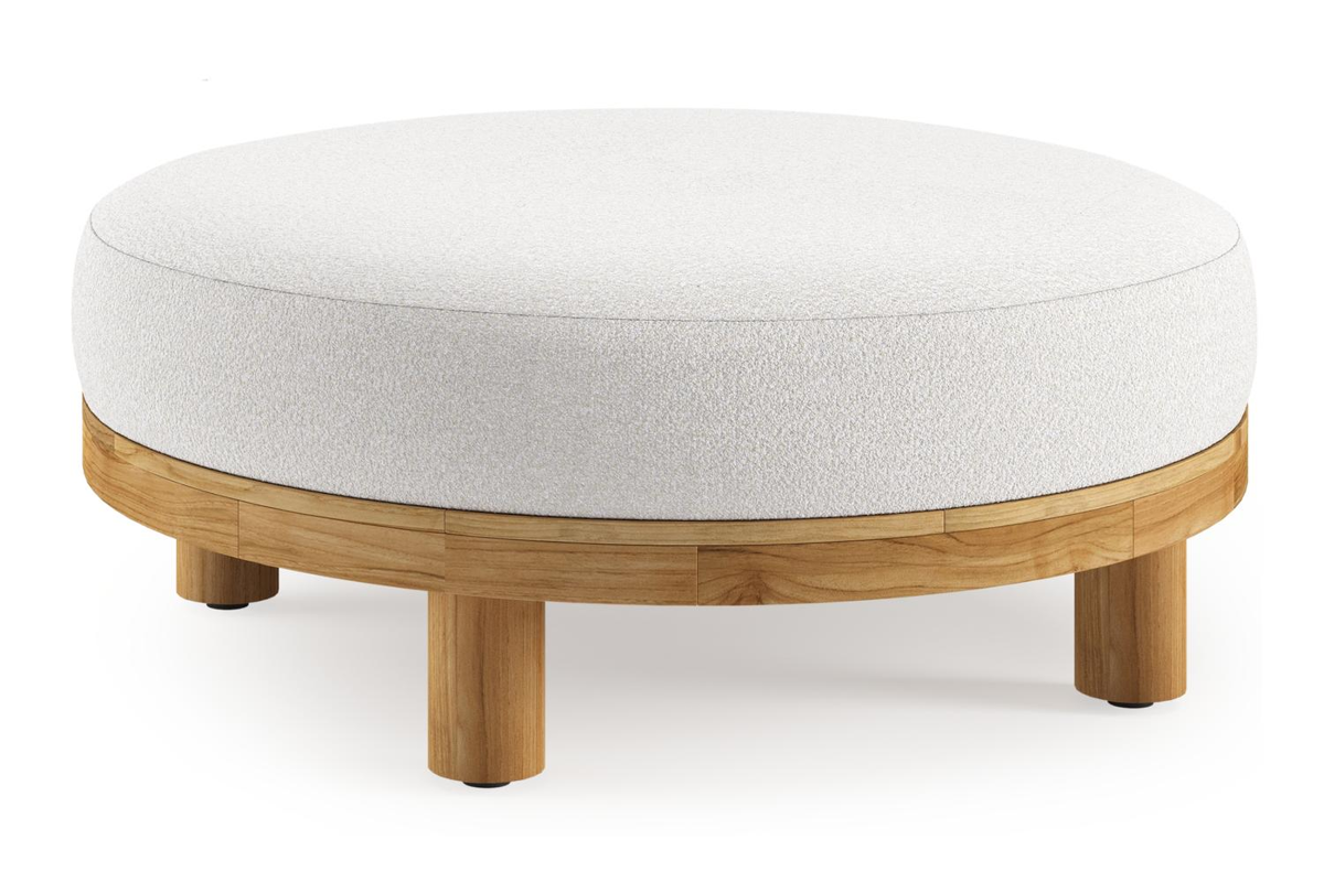 Donato lounge poef in teak en beige verticaal geweven ronde rope met all weather solica Soul Optik kussen | Exterioo
