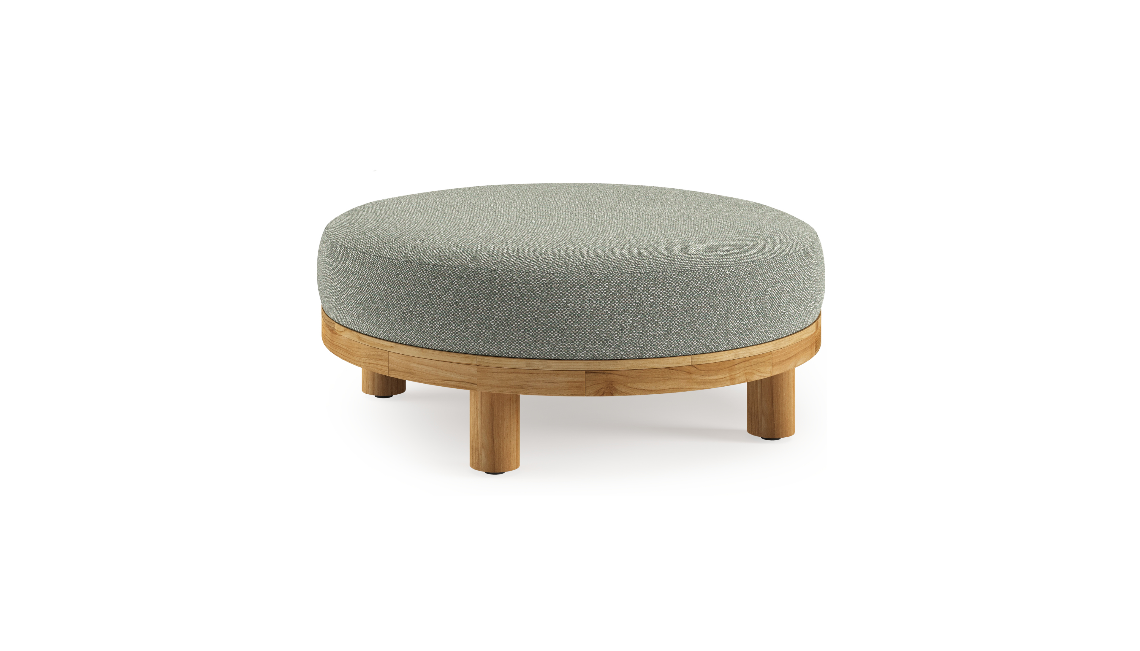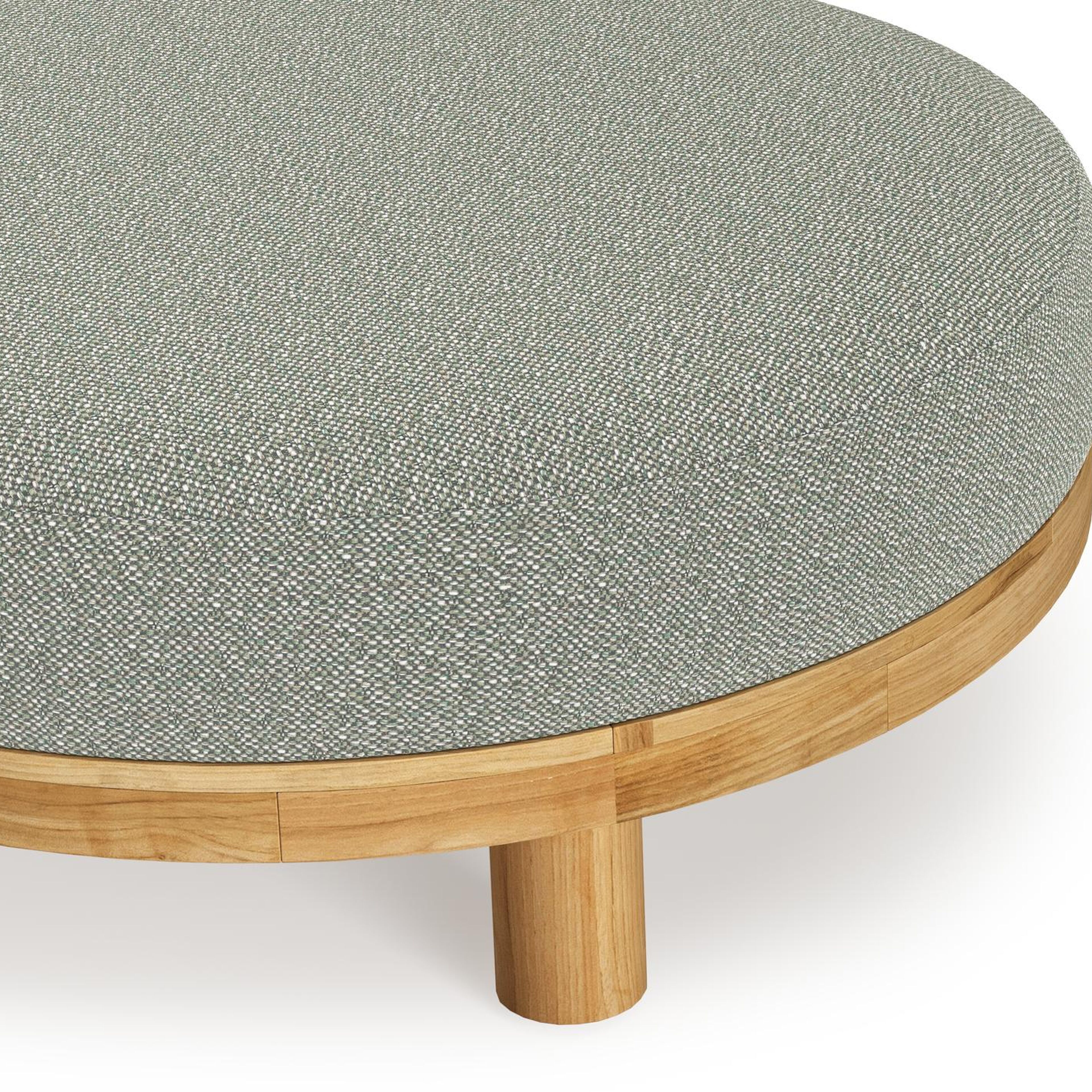 Donato lounge poef in teak en beige verticaal geweven ronde rope met all weather sunbrella® luxe Savane Leaf kussen | Exterioo tuinmeubelen