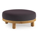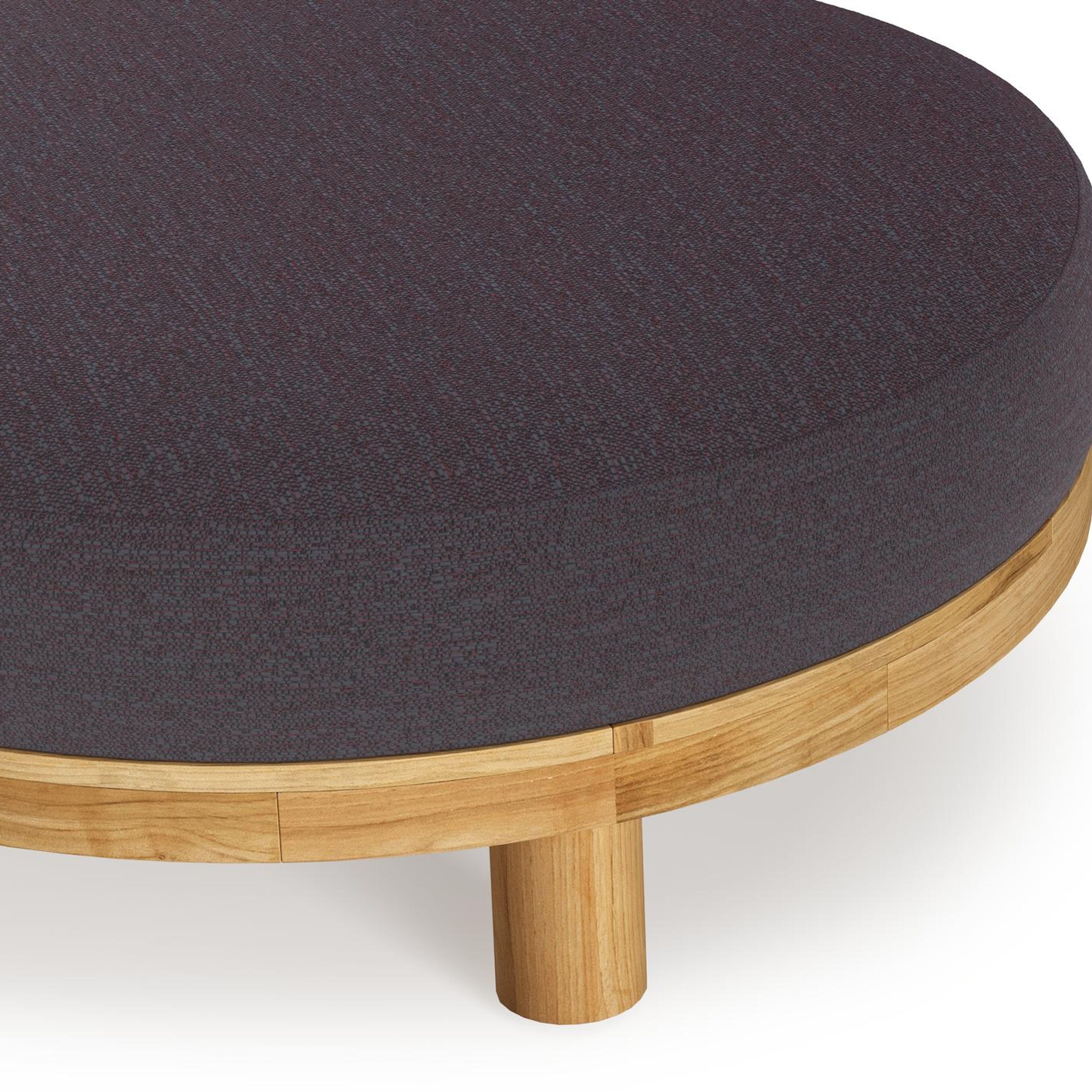 Donato lounge poef in teak en beige verticaal geweven ronde rope met all weather sunbrella® luxe Tundra Red kussen | Exterioo tuinmeubelen