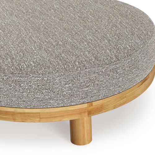 Donato lounge poef in teak en beige verticaal geweven ronde rope met all weather sunbrella® luxe Tundra Pepper kussen | Exterioo