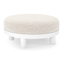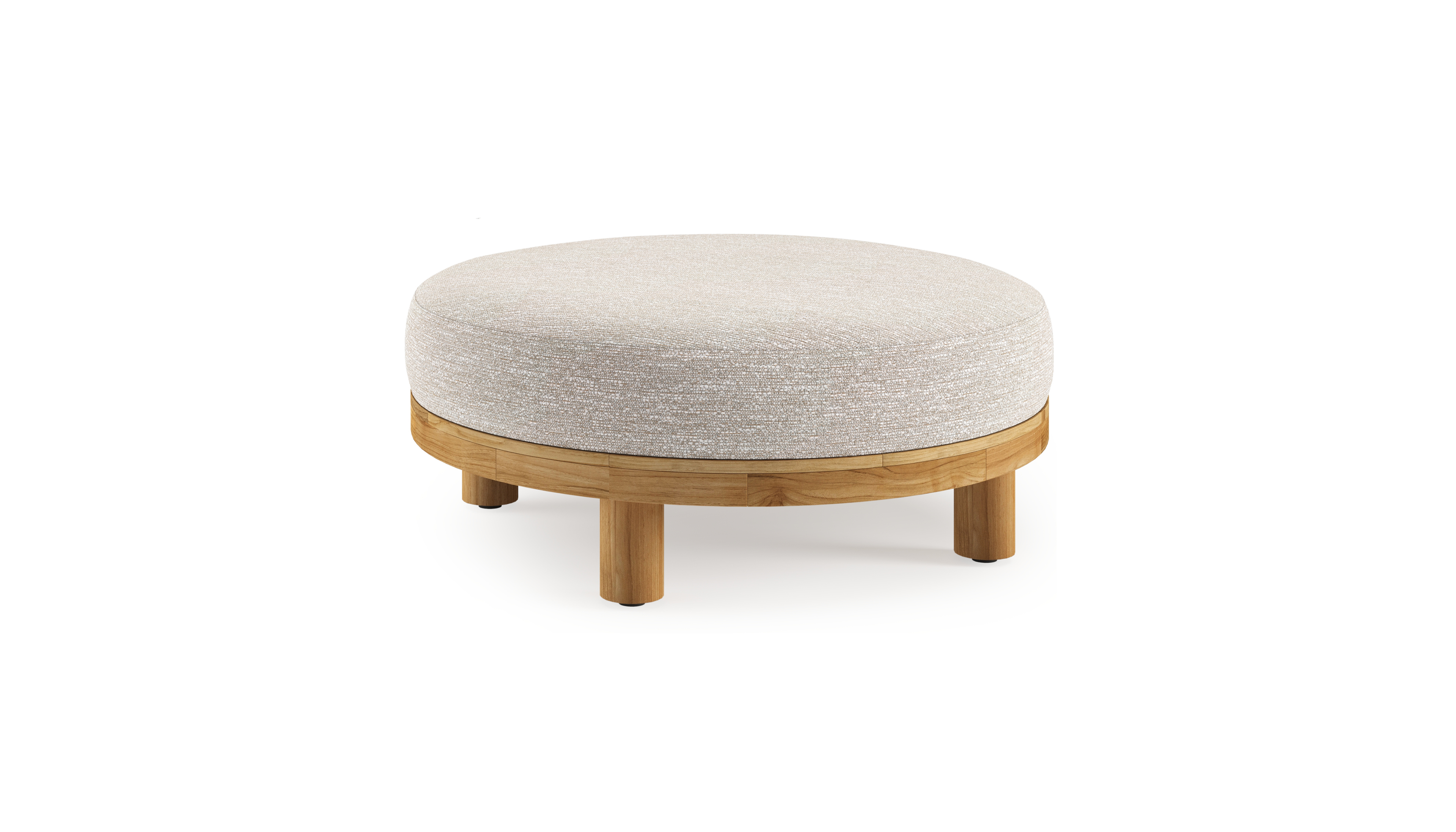Donato lounge poef in teak en beige verticaal geweven ronde rope met all weather sunbrella® luxe Tundra Sand kussen | Exterioo tuinmeubelen