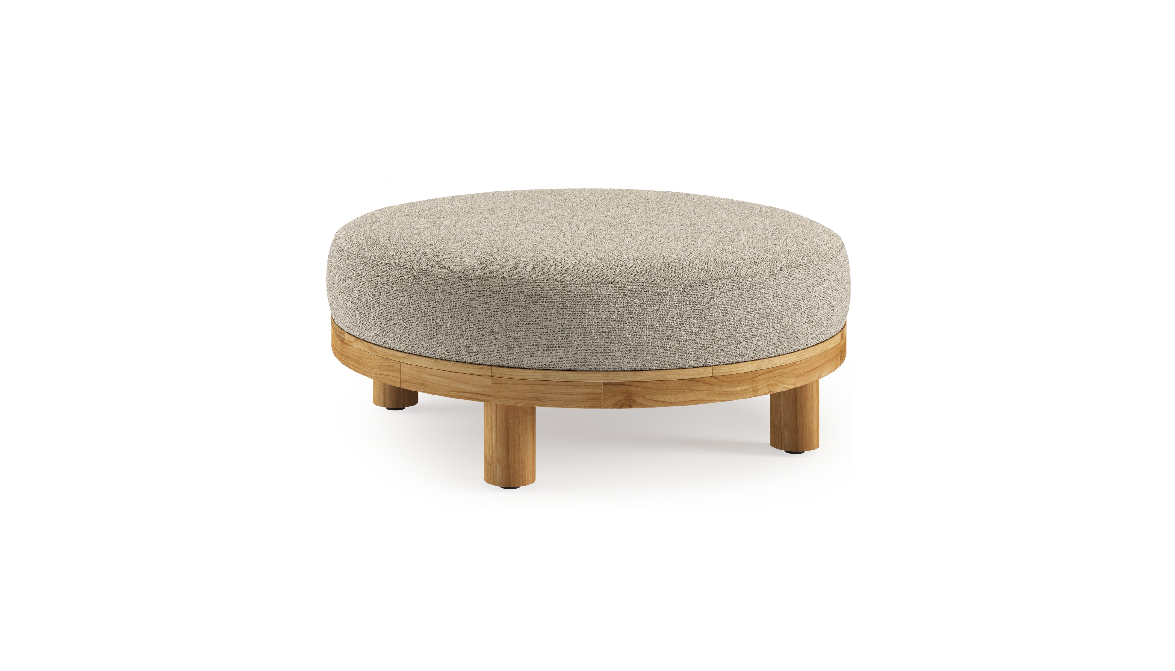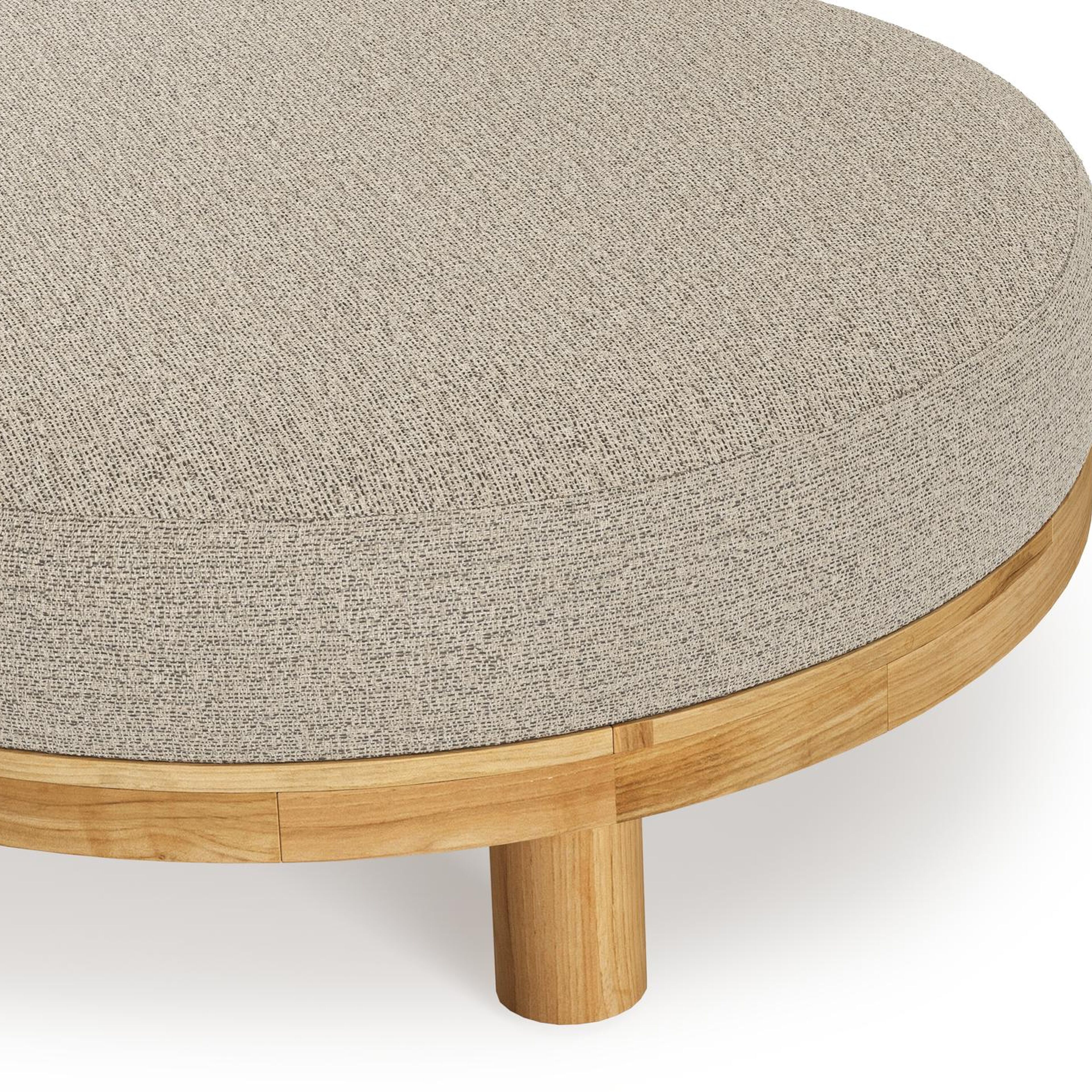 Donato lounge poef in teak en beige verticaal geweven ronde rope met all weather cosytica Catania Beige kussen | Exterioo tuinmeubelen