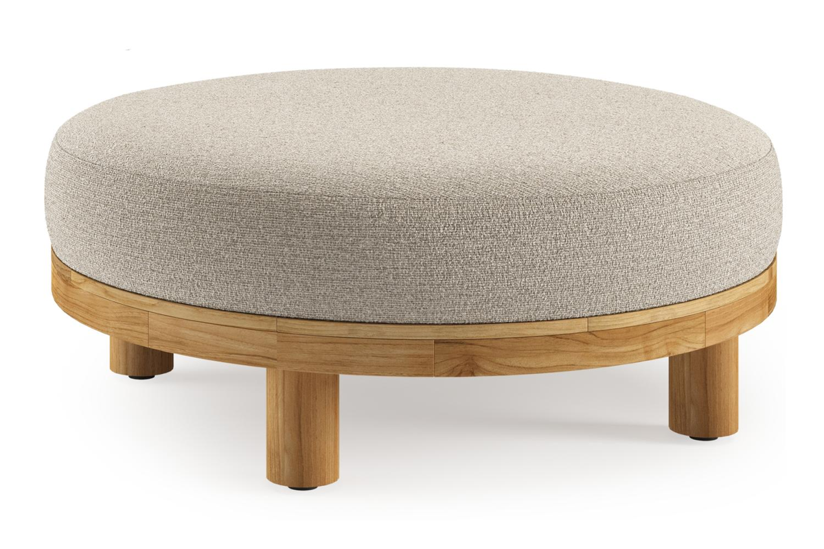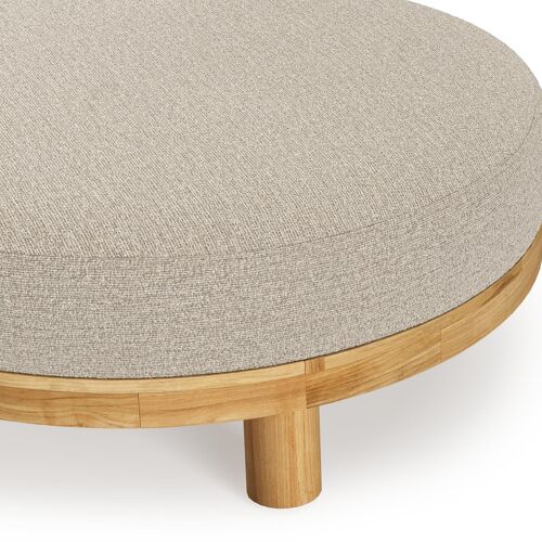 Donato lounge poef in teak en beige verticaal geweven ronde rope met all weather cosytica Catania Sand kussen | Exterioo