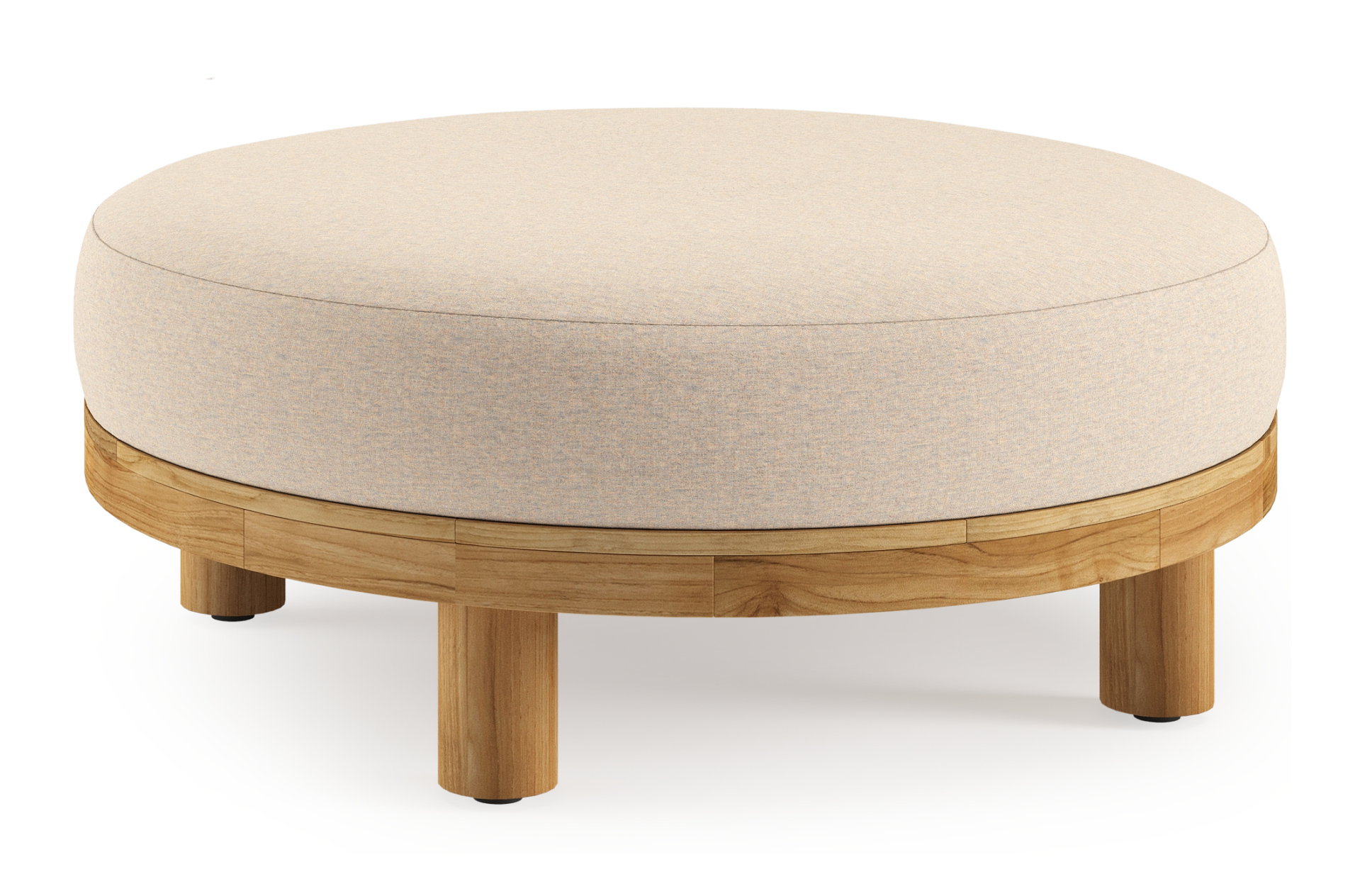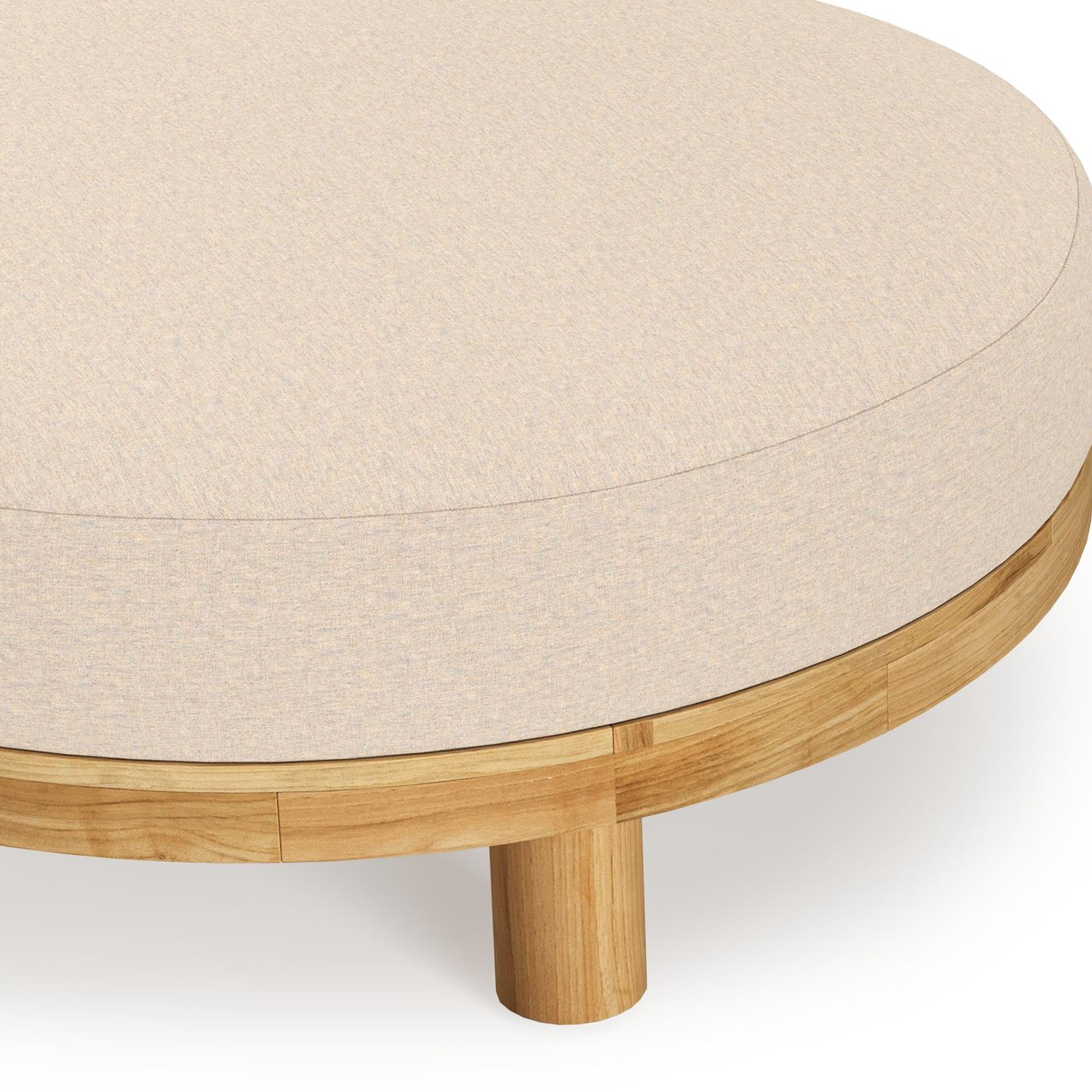 Donato lounge poef in teak en beige verticaal geweven ronde rope met all weather sunbrella® luxe Heritage Papyrus kussen | Exterioo tuinmeubelen