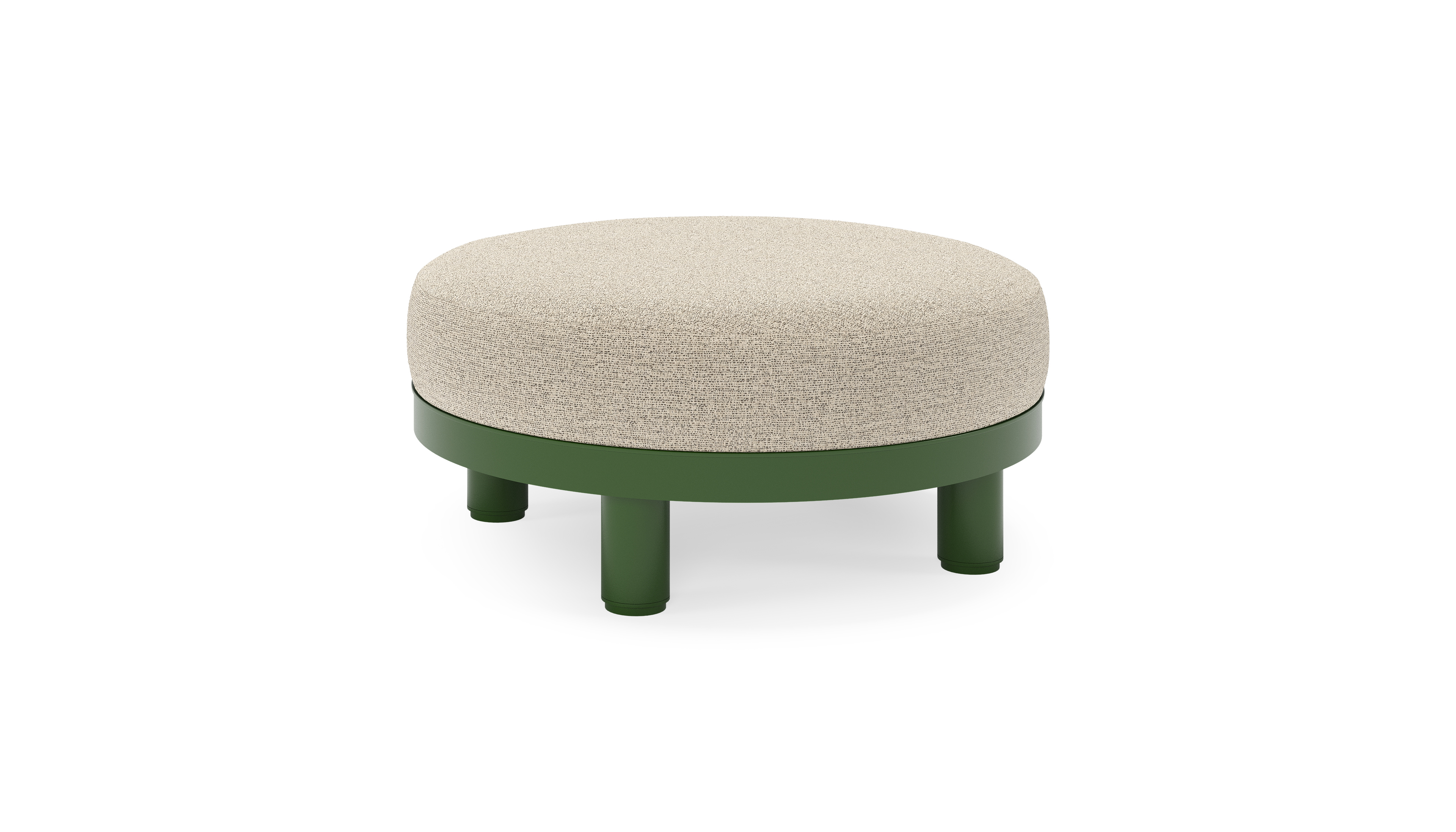 Donato lounge poef in groen aluminium met all weather cosytica Catania Beige kussen | Exterioo tuinmeubelen
