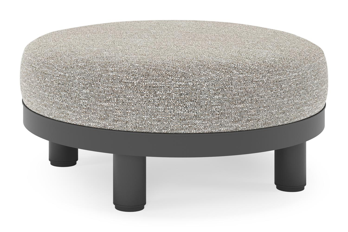 Donato lounge poef in zwart aluminium met All Weather Sunbrella® Luxe Tundra Pepper kussen | Exterioo