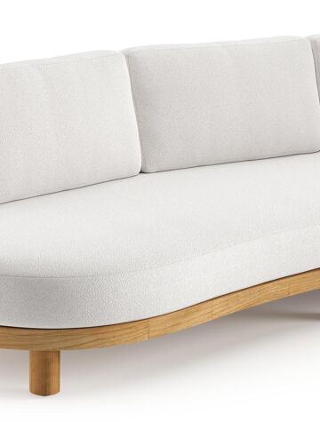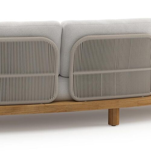 Donato loungebank in teak en beige verticaal geweven ronde rope met all weather solica Soul Optik kussen | Exterioo