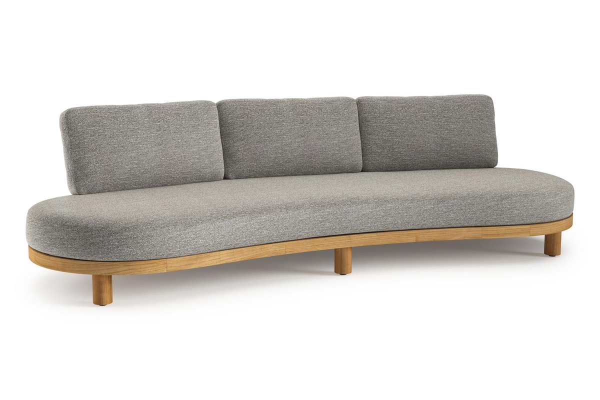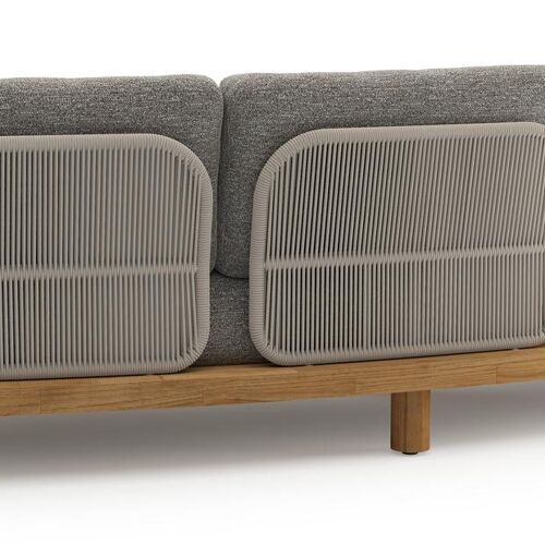 Donato loungebank in teak en beige verticaal geweven ronde rope met all weather sunbrella® luxe Tundra Pepper kussen | Exterioo
