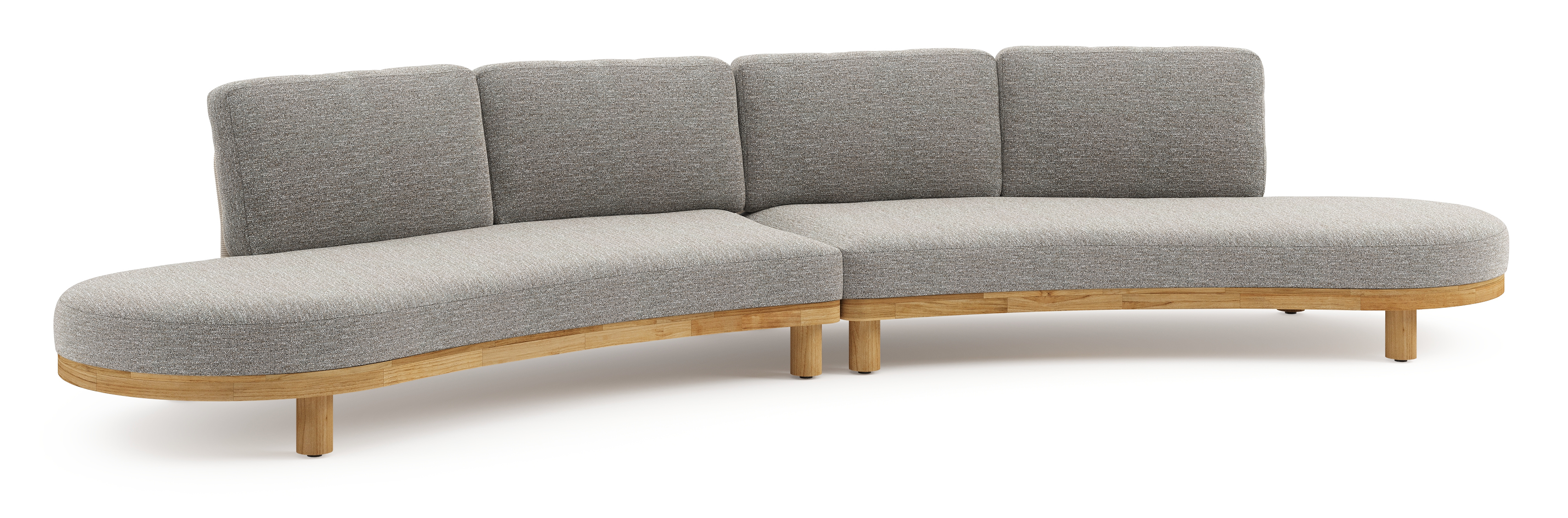Donato omarmt de natuur met vloeiende vormen, warm teak en stijlvol aluminium in wit, zwart of beige. Een ontwerp dat rust uitstraalt, karakter toevoegt en natuurlijke elegantie naar je tuin brengt.