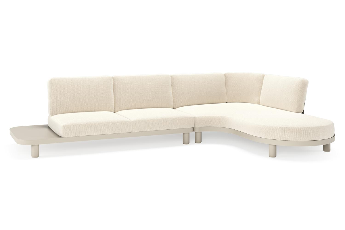 Donato loungehoek in beige aluminium met althea off white all weather cosytica kussen | Exterioo