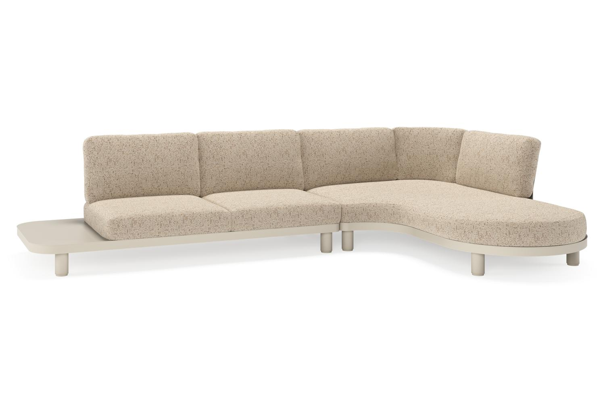 Donato loungehoek in beige aluminium met bora jungle all weather cosytica kussen | Exterioo