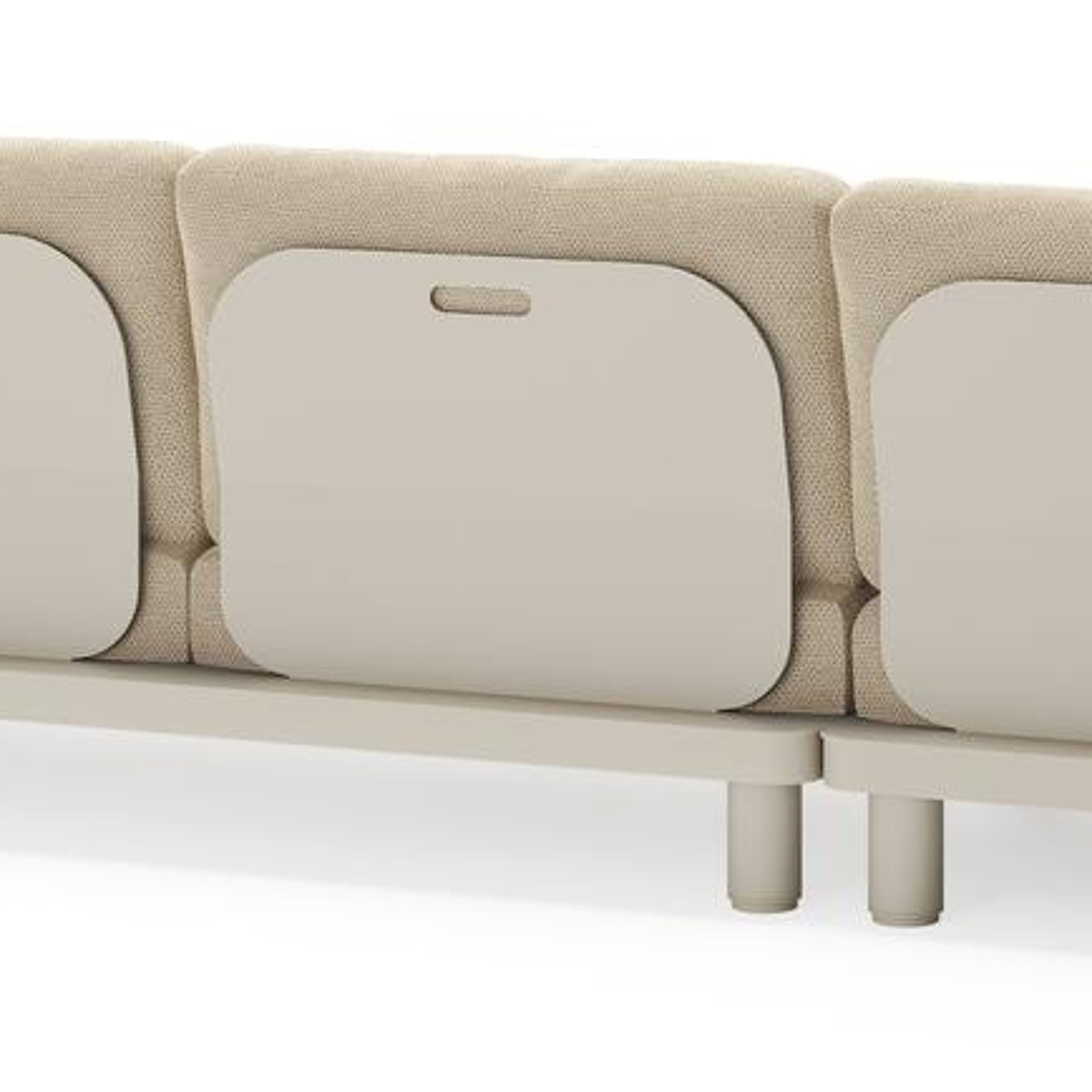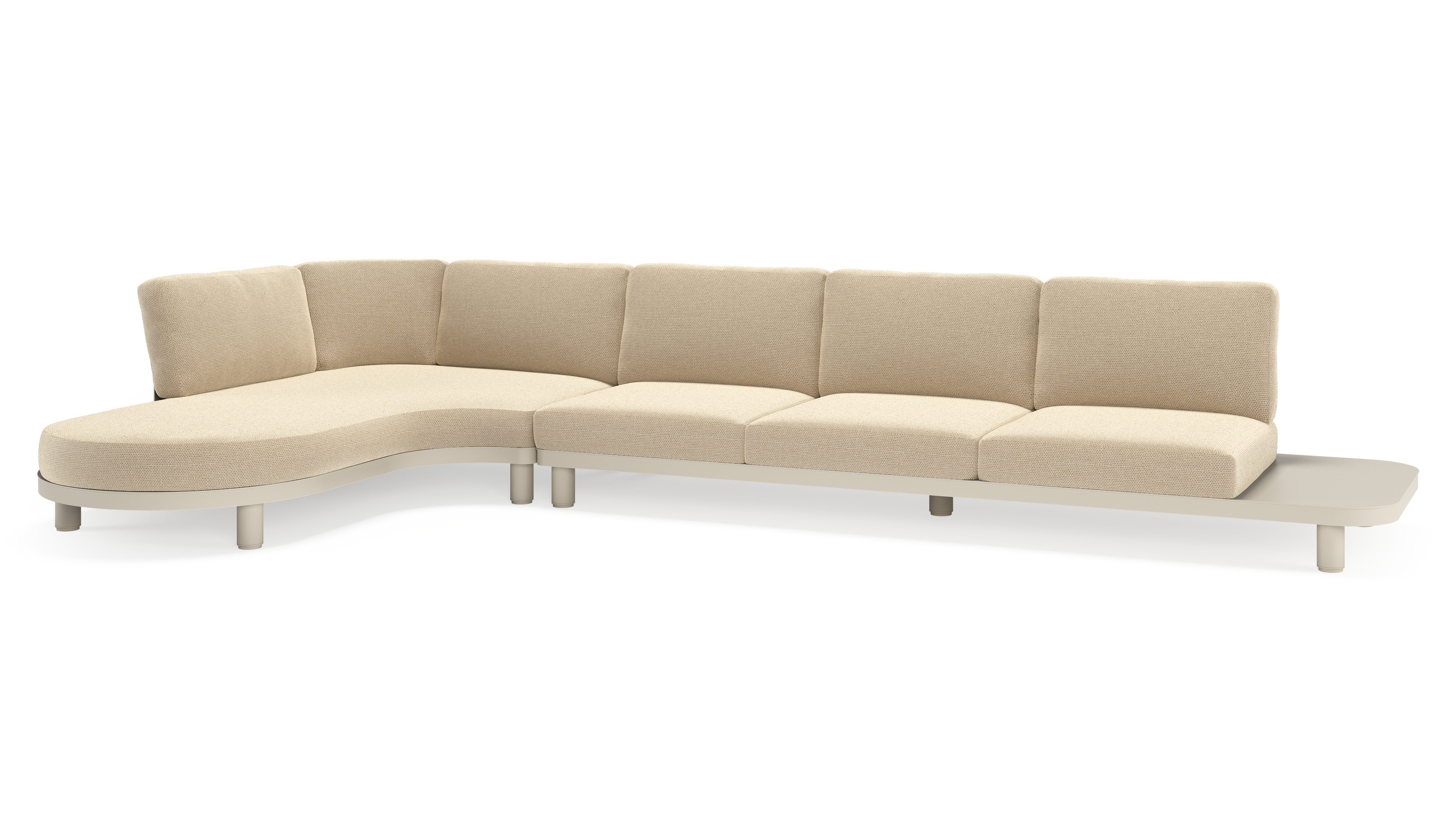 Donato loungehoek in beige aluminium met althea camel all weather cosytica kussen | Exterioo tuinmeubelen