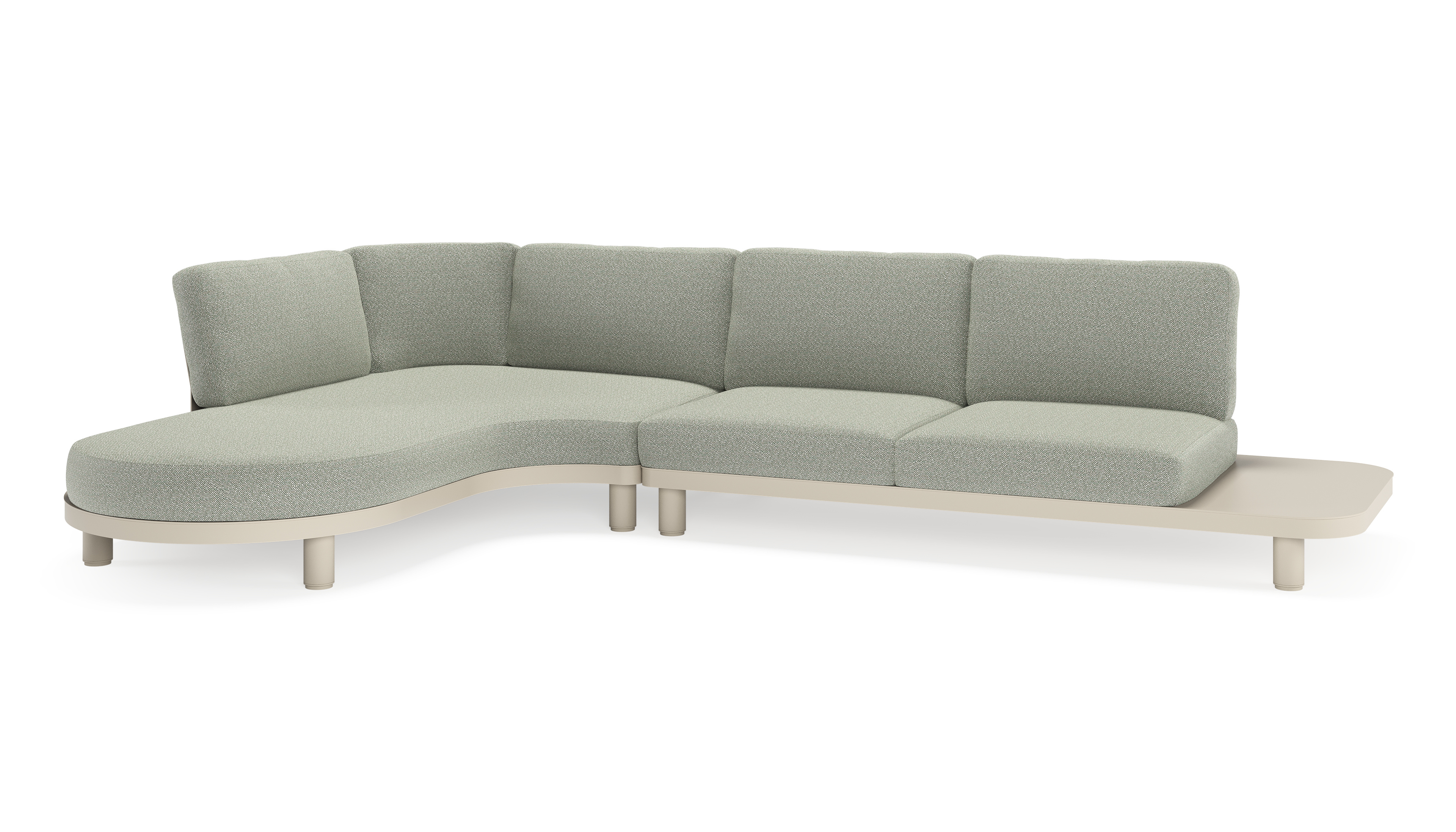 Donato loungehoek in beige aluminium met savane leaf all weather sunbrella® luxe kussen | Exterioo tuinmeubelen