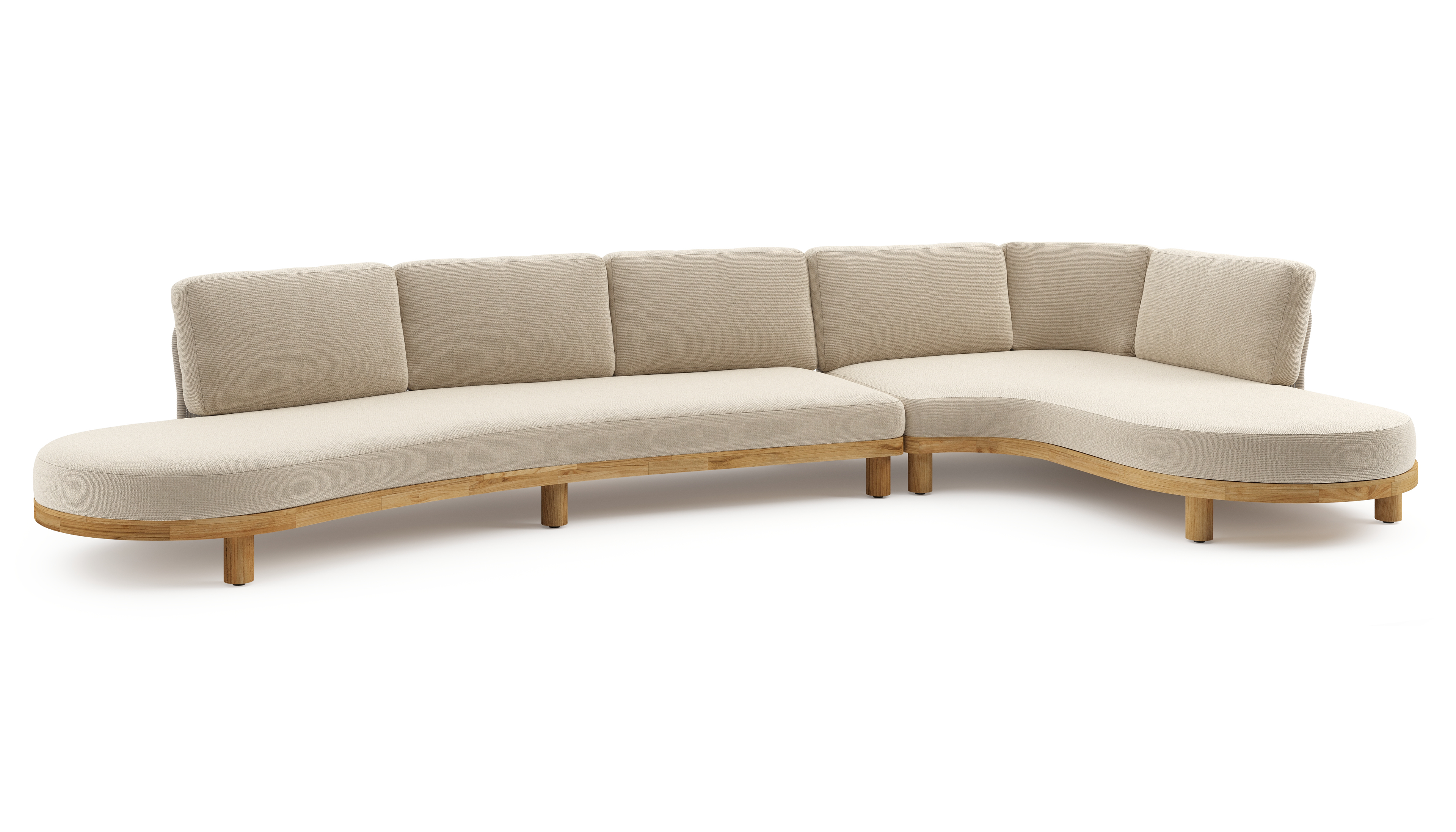 Donato loungehoek in teak en beige verticaal geweven ronde rope met all weather cosytica Althea Chalk kussen | Exterioo tuinmeubelen