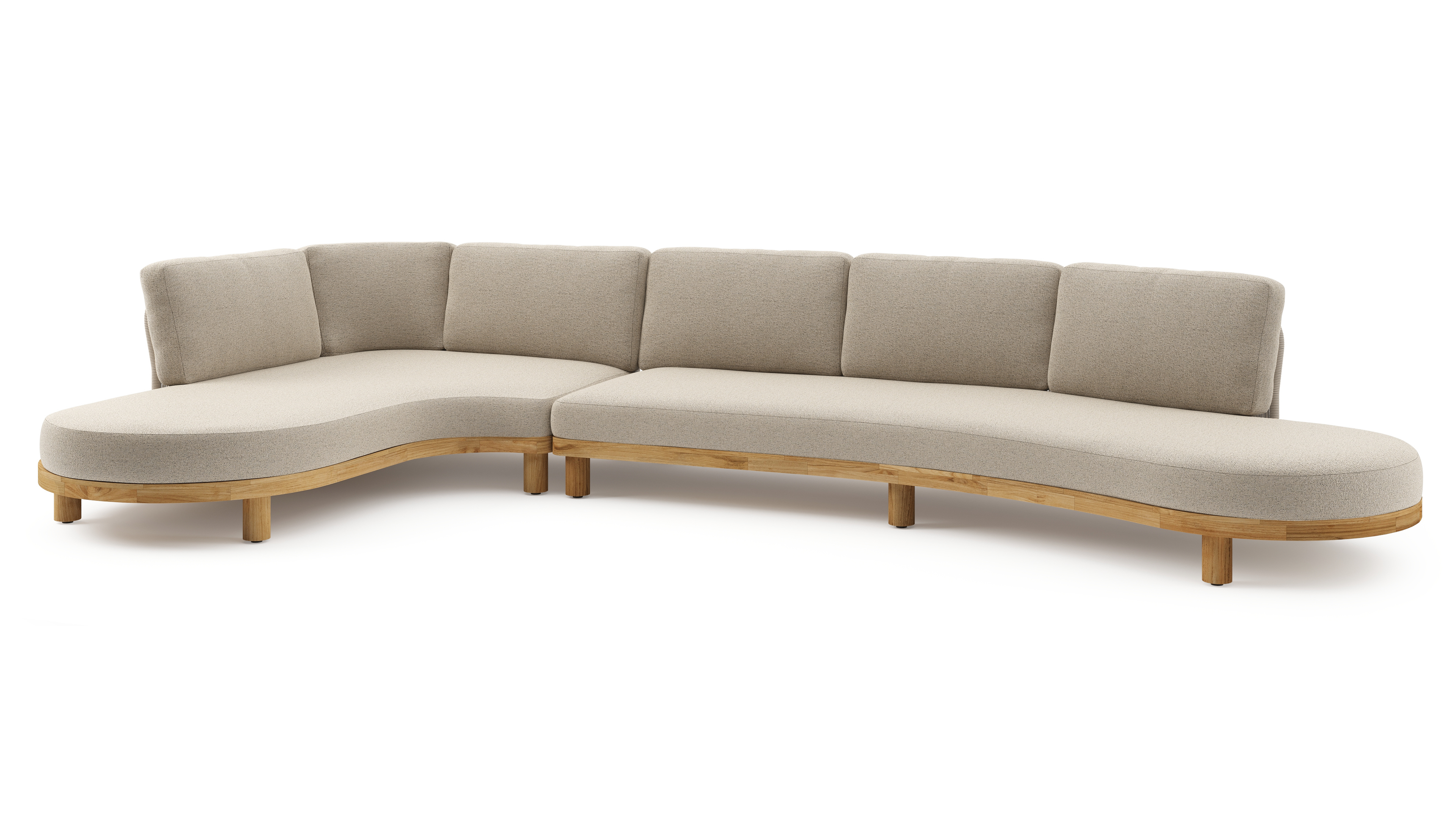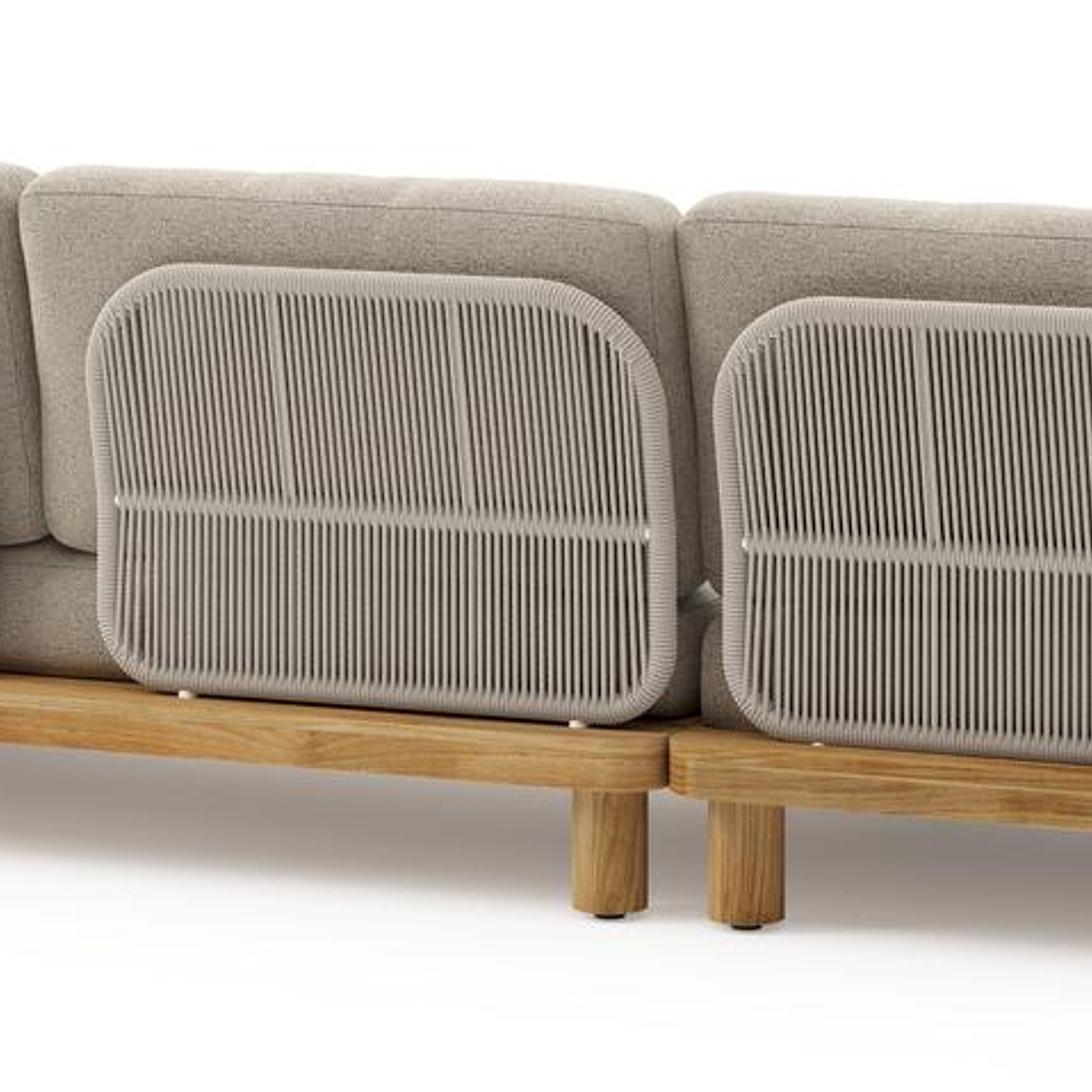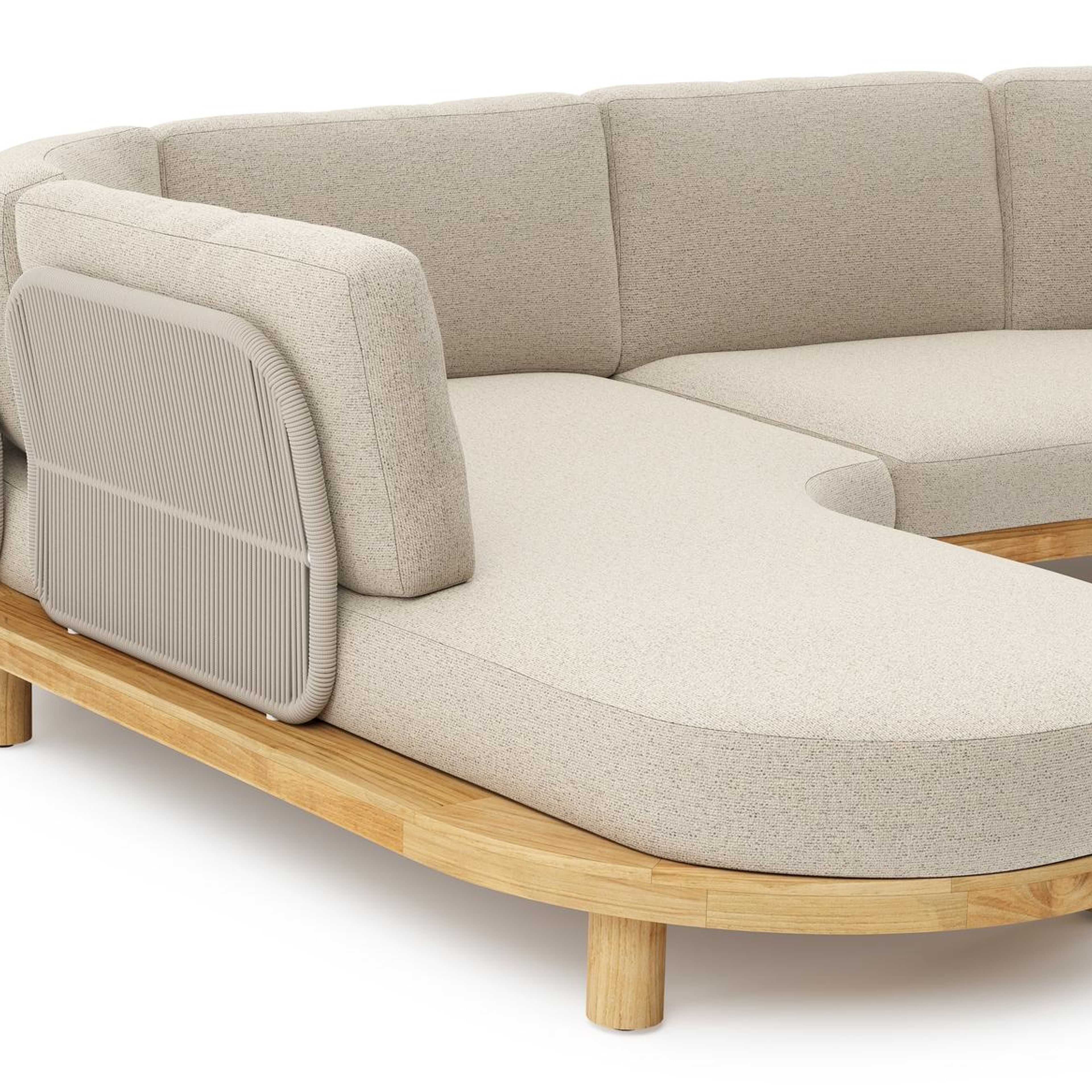 Donato loungehoek in teak en beige verticaal geweven ronde rope met all weather cosytica Marbella Beige kussen | Exterioo tuinmeubelen