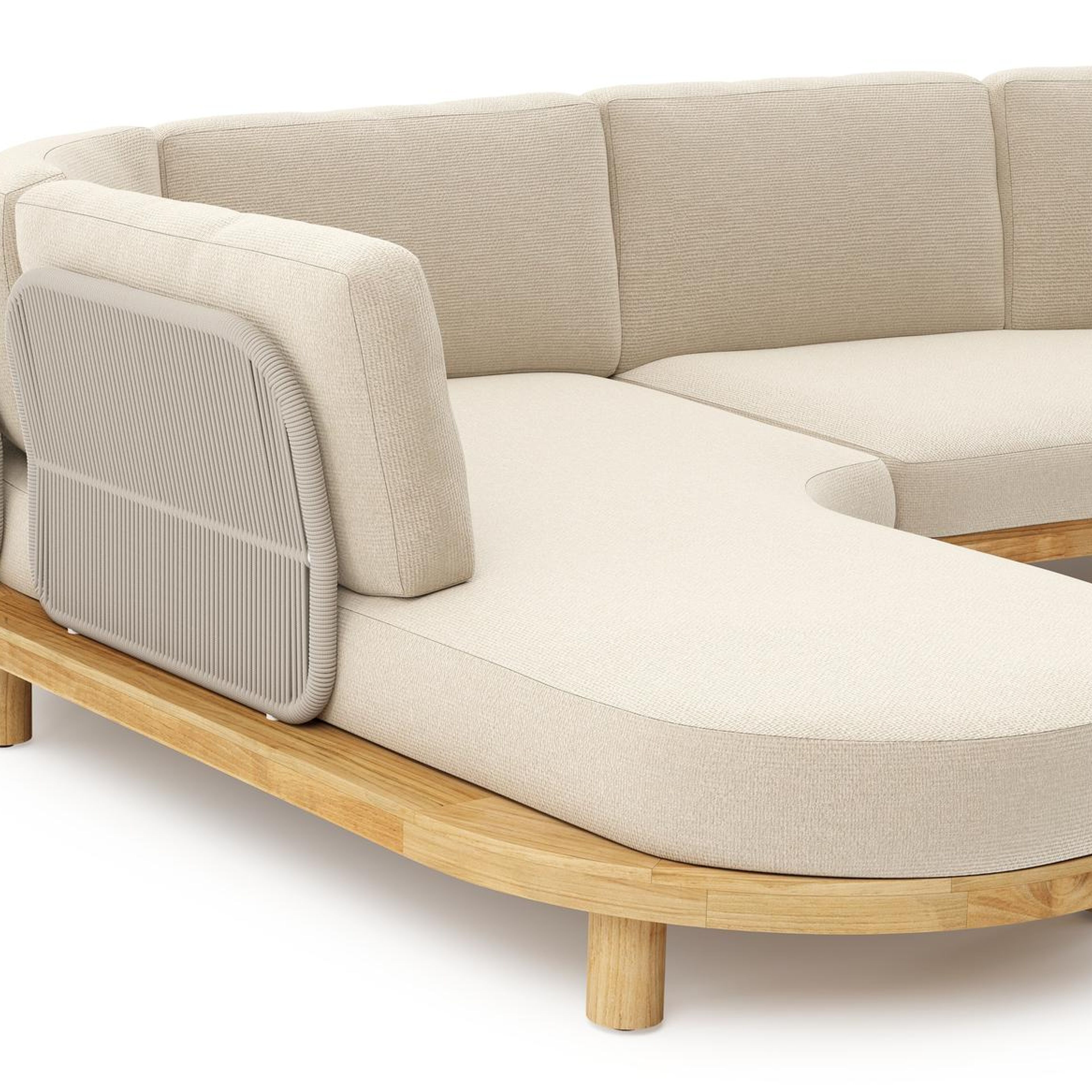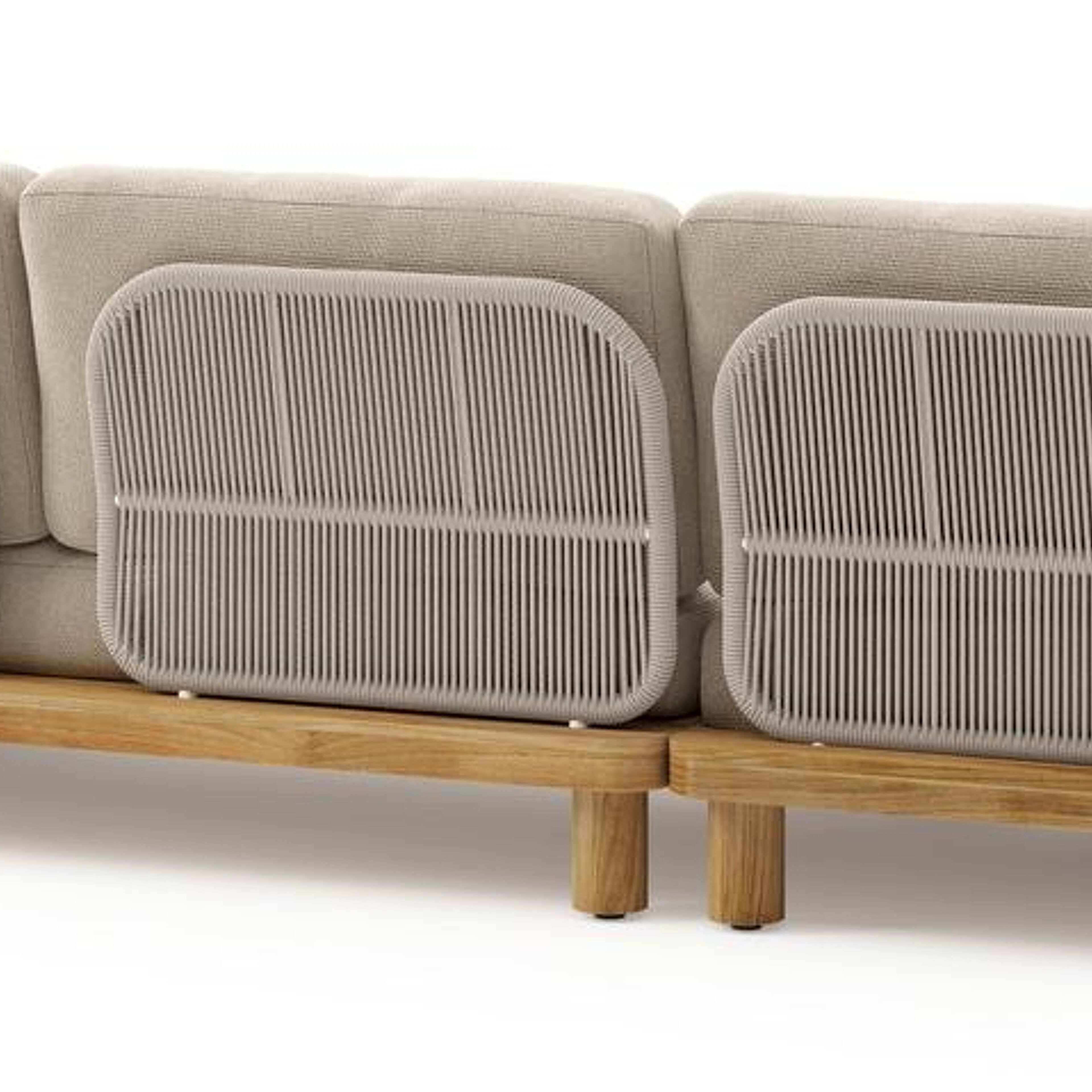 Donato loungehoek in teak en beige verticaal geweven ronde rope met all weather cosytica Althea Chalk kussen | Exterioo tuinmeubelen